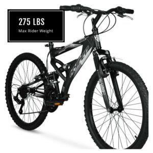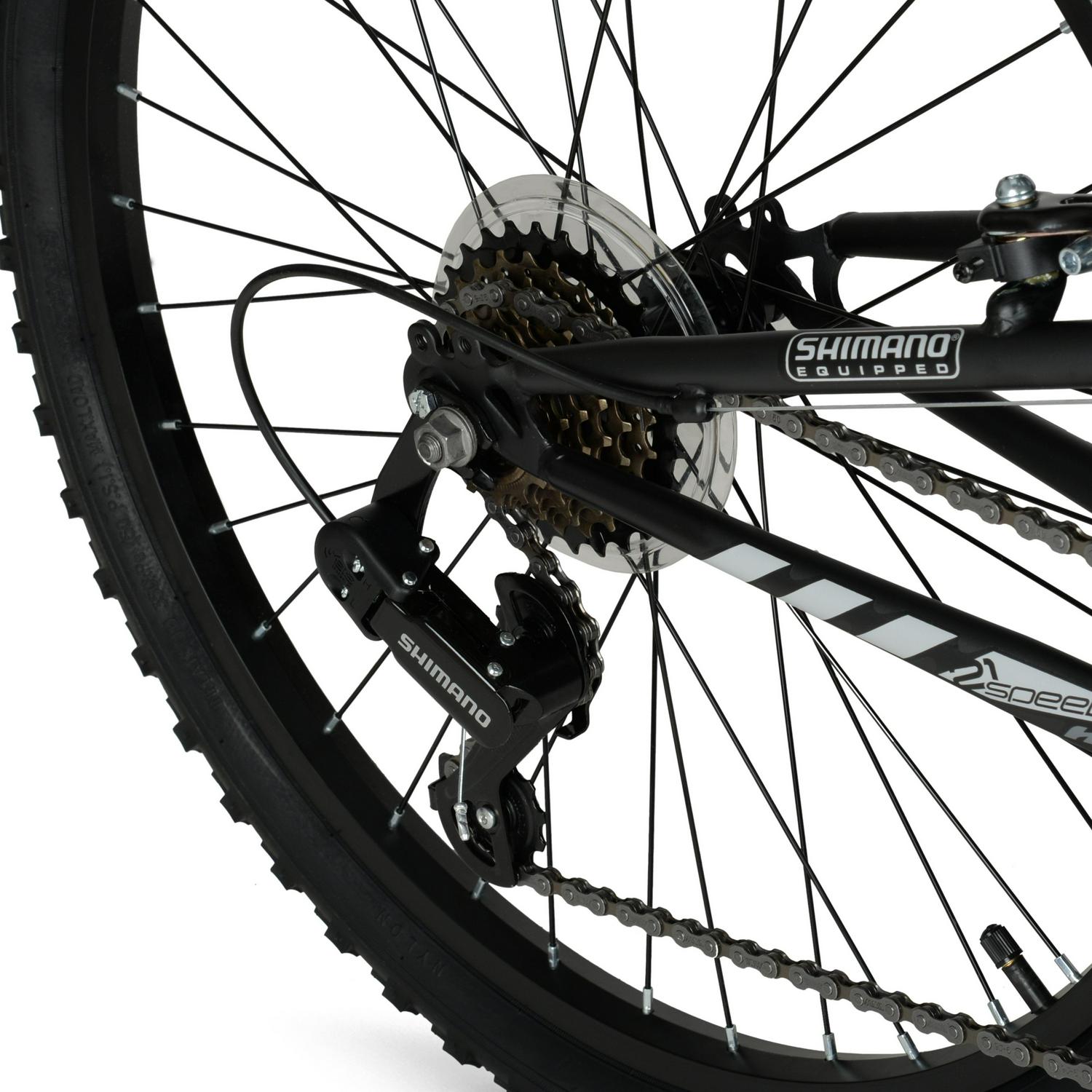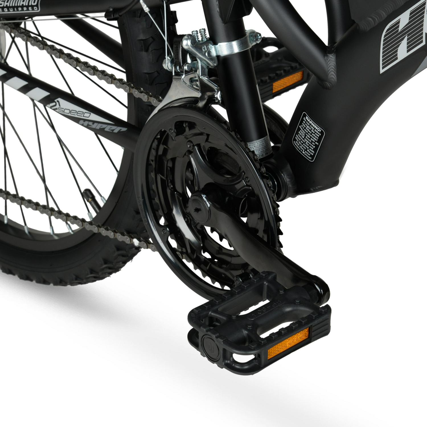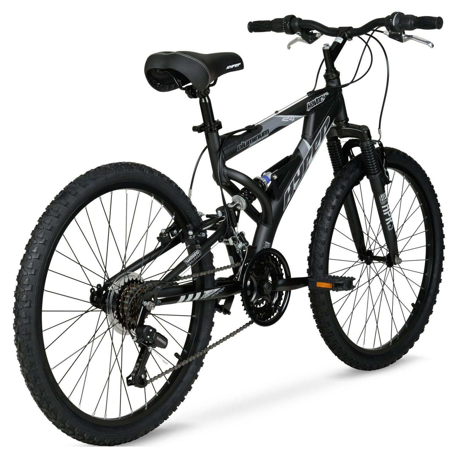 This Hyper Havoc boy’s Mountain Bike is the key to outdoor fun. It has a lightweight aluminum frame that lets users ride harder for longer, providing a reliable experience. The 24″ Hyper Havoc is designed with a front and rear suspension to offer a smooth ride on any surface. It features 21 speeds, ensuring versatility in the ride. This mountain bike has a comfortable Shimano twist shifter and a Shimano rear derailleur, allowing riders to change the gears quickly and smoothly. It has alloy rims and front and rear linear pull brakes. This bike is made with standard pedals for a comfortable and secure ride. It has grips on the handlebars for sustained comfort and control. Additionally, the bike comes equipped with a plush MTB seat, so backsides will stay comfortable on long rides. It has a sleek, black design that provides a modern look. The bike can be ridden on a variety of surfaces, allowing for flexibility in where you go with it. A bike for teens and adults