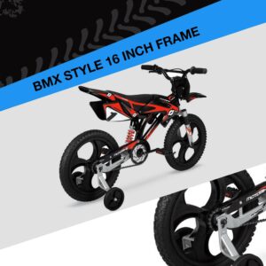 Hyper Bicycles 16 Kids Unisex Motobike with Mag Wheels, Including Training Wheels, Black/Red, Recommended Ages 5 to 7 Years Old