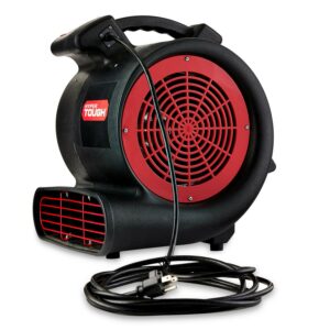 With its rugged construction, this Hyper Tough 1/4 HP 2-Speed Utility Fan, Air Mover, Floor Carpet Dryer with 15ft Powercord, Black is perfect for use in your garage, workshop, basement, kitchen, and more. Drying applications includes carpet, walls, floors, cabinets, etc. Benefit from the adjustable sliding handle, it s easy to adjust the desired height with the levers. The powerful 1/4 HP motor features 1000 CFM airflow, makes it a high power fan which is suitable for construction sites, warehouses, worksites and workshops. With the function of 2-speed adjustments and 3-angle (level, 45 degrees and 90 degrees) blowing direction you can conveniently control air flow to almost any direction while proper wind no matter floor, wall, ceiling drying & restoration. Built in heavy duty 15′ cable with 3-prong 120V AC connection makes it available for long distance reach. Just wrap the power cord around the carry handle for storage, conveniently.