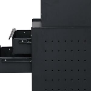 - Cabinet has Pegboard Side Panels with 15 included Peg Hooks