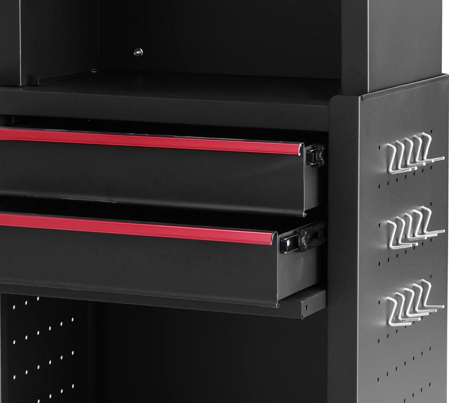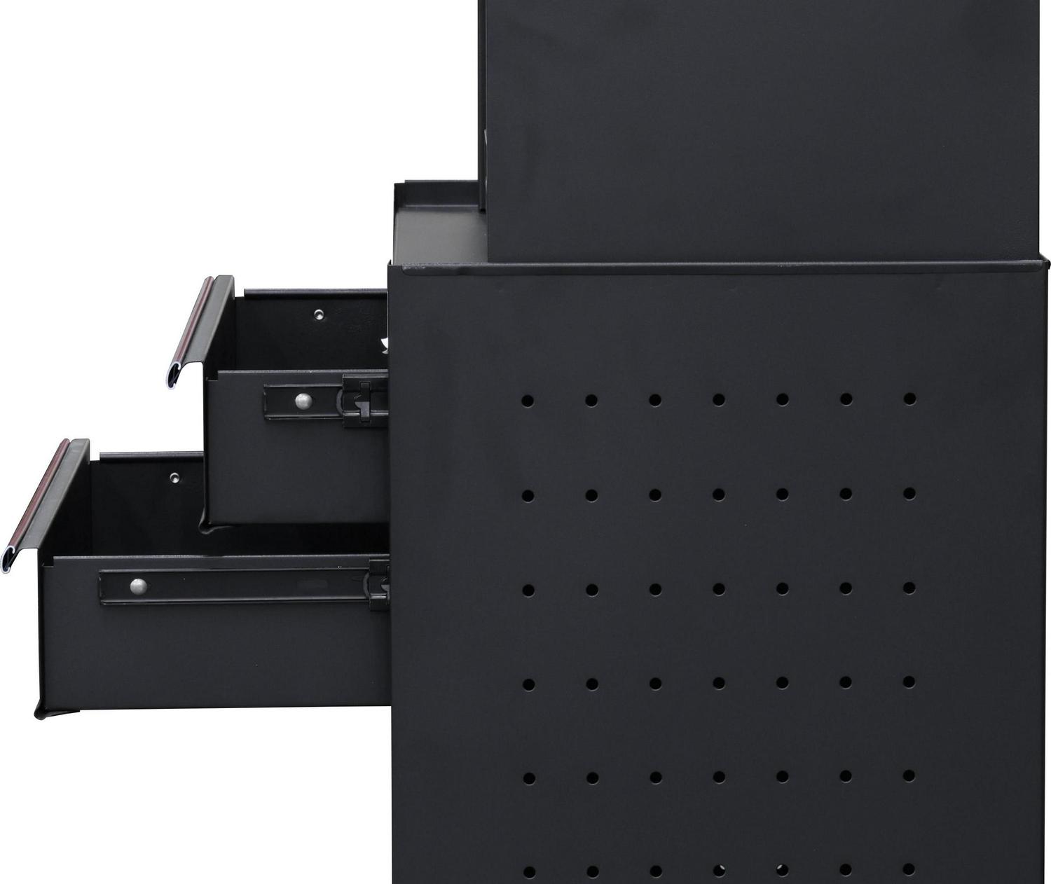 – Cabinet has Pegboard Side Panels with 15 included Peg Hooks