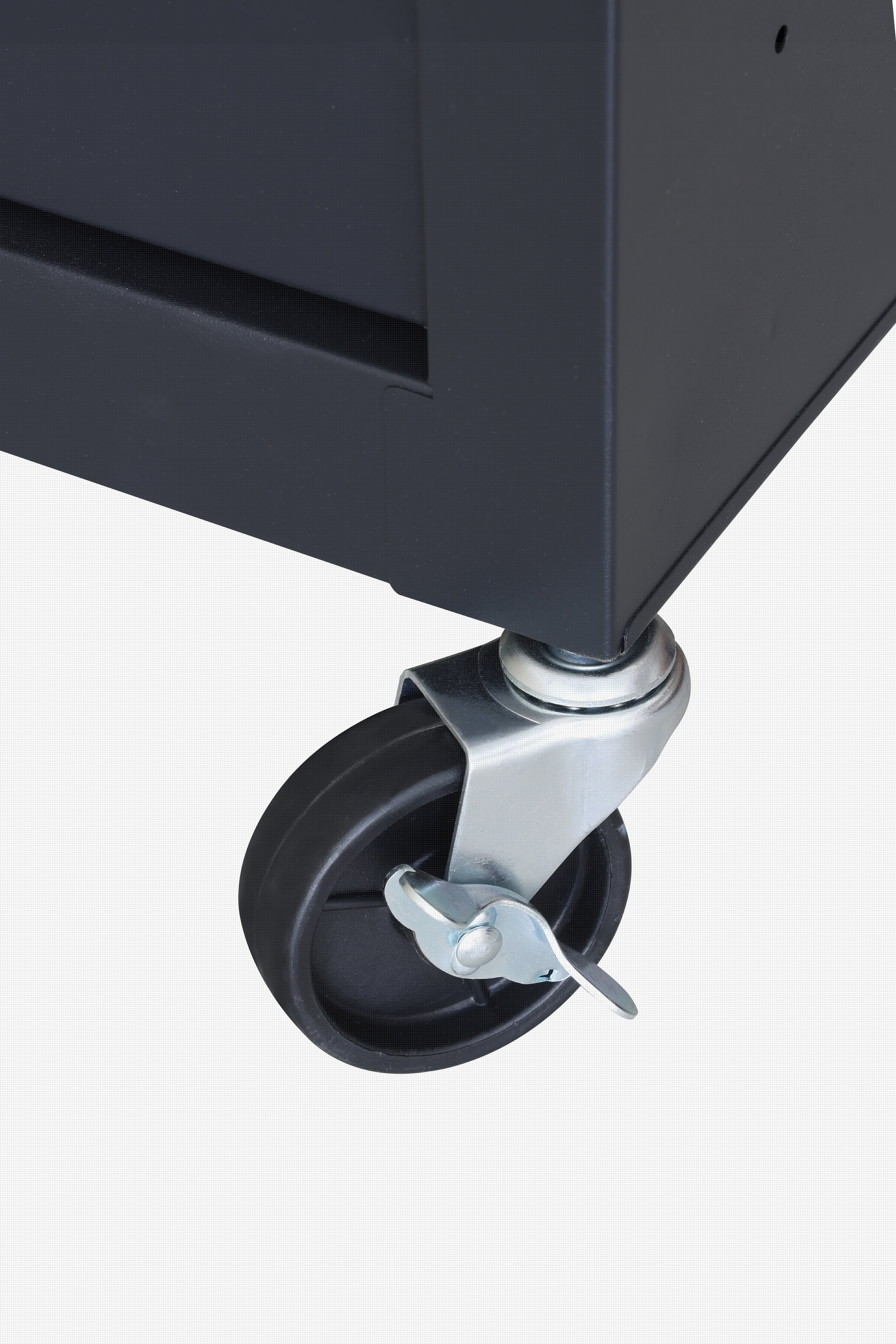 - 2 swivel casters with brakes and 2 fixed casters