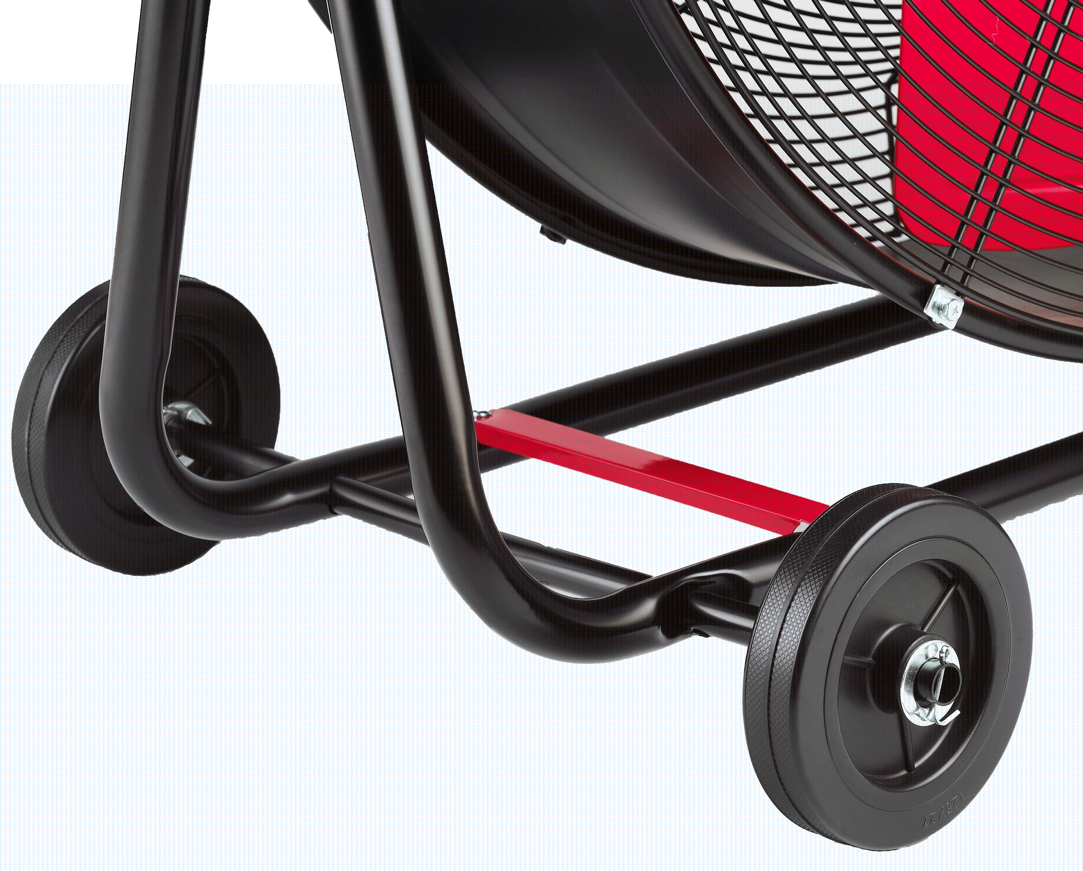 – Features a convenient carriage with a handle as well as 2 handles on the fan for portability