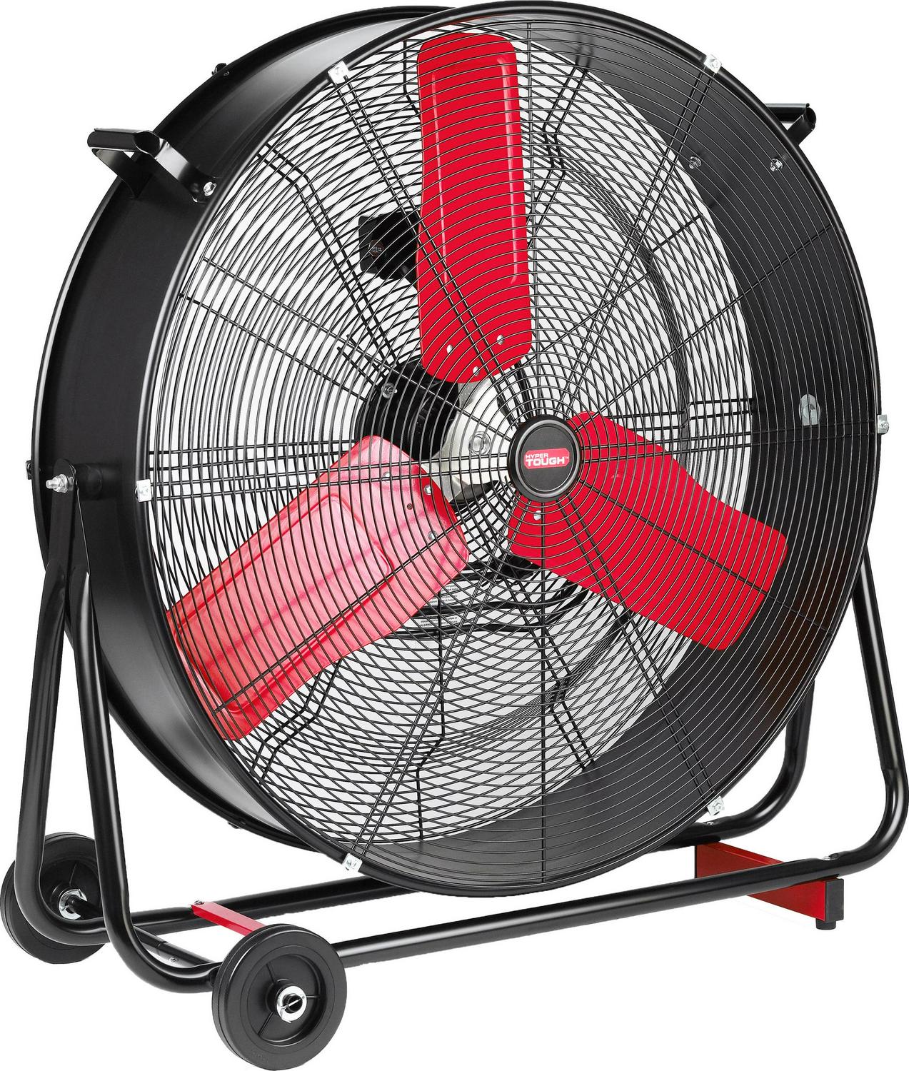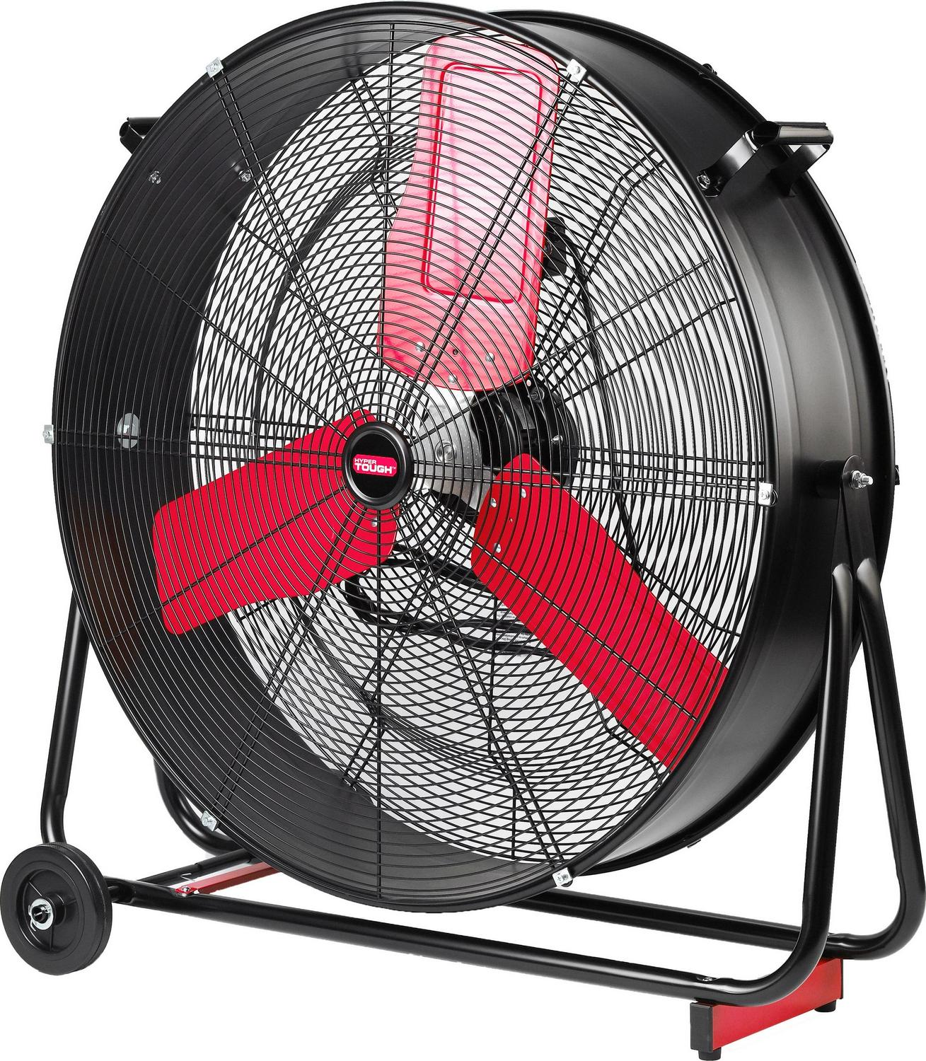 The Hyper Tough 30 inch, 2-speed, tilting drum fan is ideal for heavy duty air circulation in light duty or commercial applications. This fan is widely used in large spaces like warehouses, garages, barns, greenhouses or gyms. The fan features a durable metal frame and 3 aerodynamically balanced aluminum blades for even air flow. This 2-speed direct drive fan is dependable and provides powerful, steady airflow to keep air moving in large spaces. The fan head can be tilted to make the air circulator deliver airflow where it is needed. The wheels on the stand and built-in handles together make it easy to move the fan. If you need to get some air circulating in a large space, pick the Hyper Tough 30 inch 2-Speed, Tilted Drum Fan.