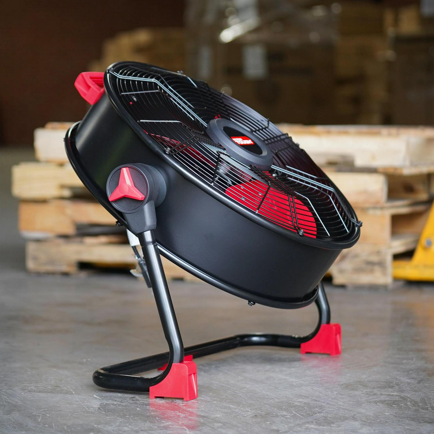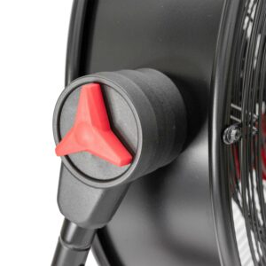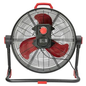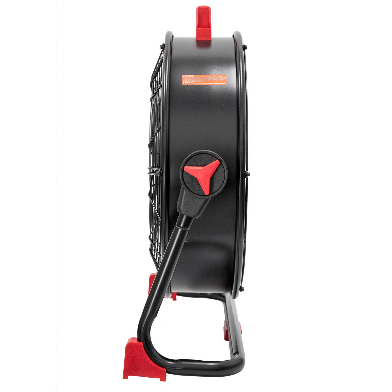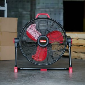 The Hyper Tough 20″ Powerful Brushless DC Drum Fan in Black will provide a cooling breeze throughout workshops, factories, garages, gyms, greenhouses, barns, and more. An energy saving, brushless DC motor powers 3 sturdy aluminum blades that operate at variable speeds controlled by a rotary switch on the back. The tilt is adjustable allowing for different airflow direction when needed. The all metal heavy-duty body and stand are strong enough to last in workplace settings while the non-slip rubber pads on the stand prevent the fan from slipping. A carry handle allows for easy relocation.