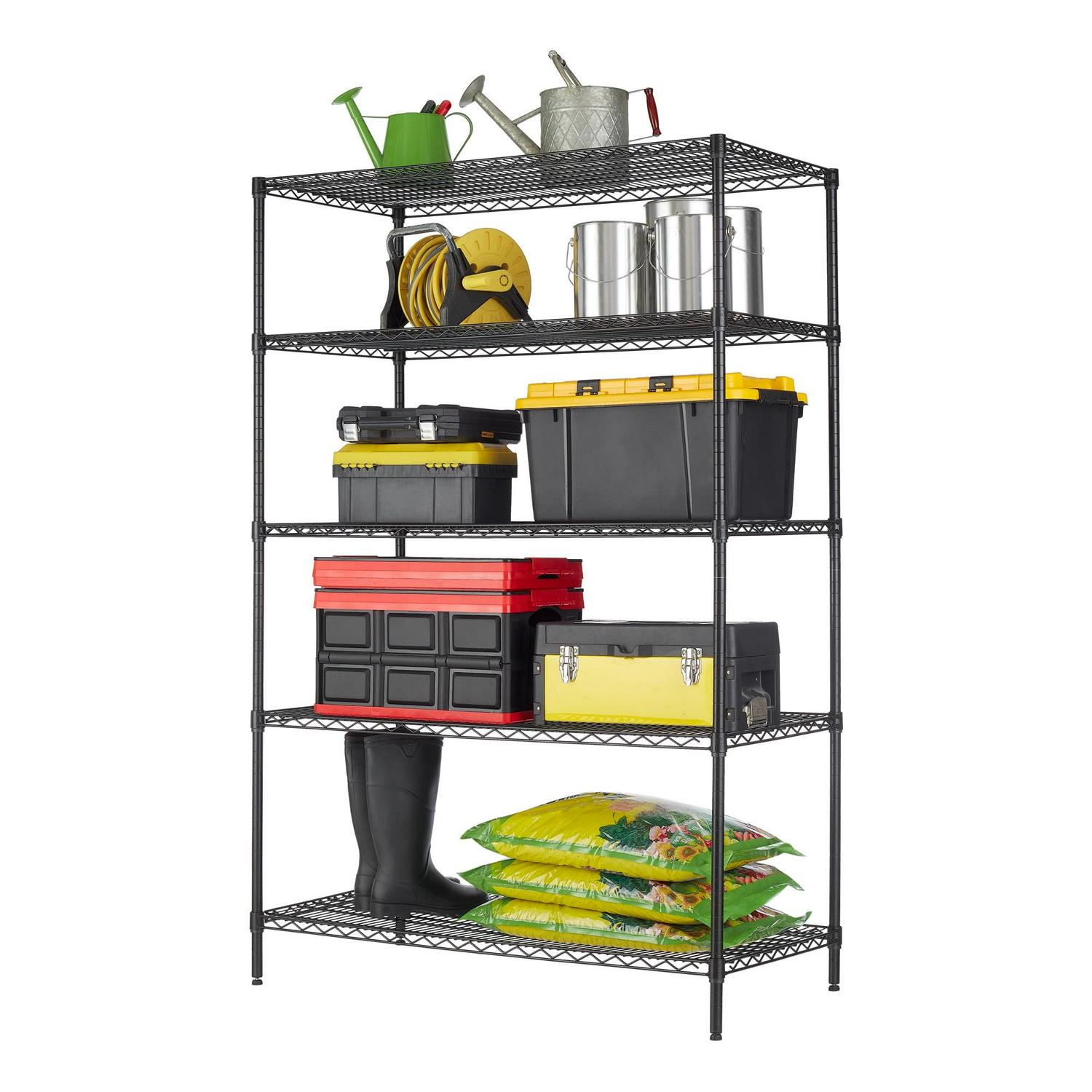 Hyper Tough Black Wire Shelf 5-Tier Heavy Duty 72″H x 48″W x 24″D, 4000lb Total Capacity