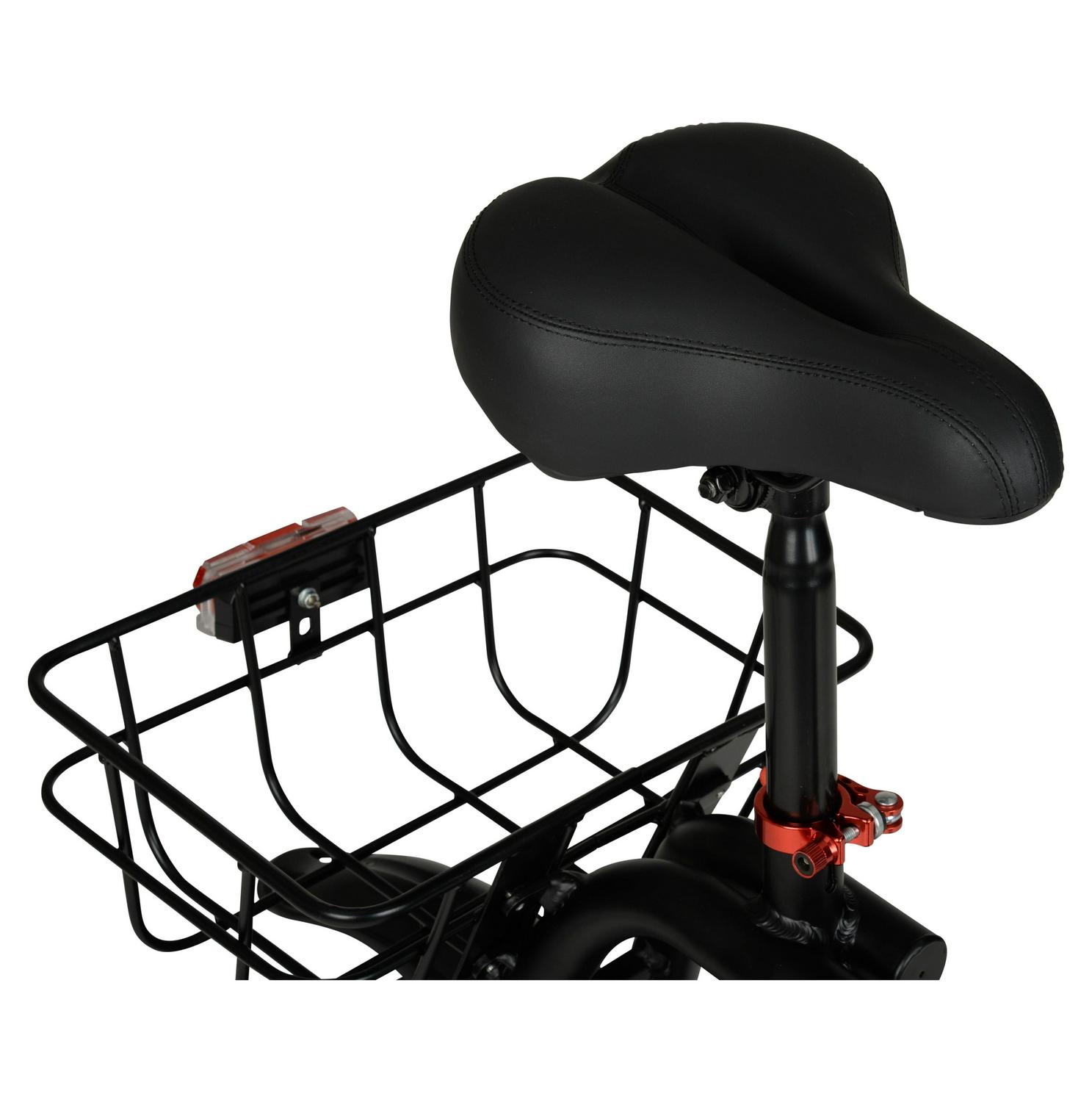 The 36 Volt 12 Skute Commute Unisex Seated Electric Scooter from Hyper is perfect for cruising around your neighborhood or running errands downtown. Enjoy the benefits of using a scooter with assistance from the electronic motor and brake! The Skute Commute E-Scooter has a foldable handlebar for easy storage at home or in your car. Includes an LED display with a power indicator. This e-scooter offers a maximum speed of 15.5 mph and a maximum range of 15 miles per charge. Comes complete with a suitable adjustable seat, LED headlights and rear lights, a wide deck, rear basket, and handle rear disc brake! With its aluminum alloy frame and 12-inch air-filled front and back tires, this e-scooter has a maximum weight of 264 lbs. UL 2272 certified. Hyper Bicycles has established an ongoing commitment to supporting cycling through sponsorships of individuals and teams, and it has maintained its position as a leader in the industry, producing the highest quality parts that perform as well as they look.