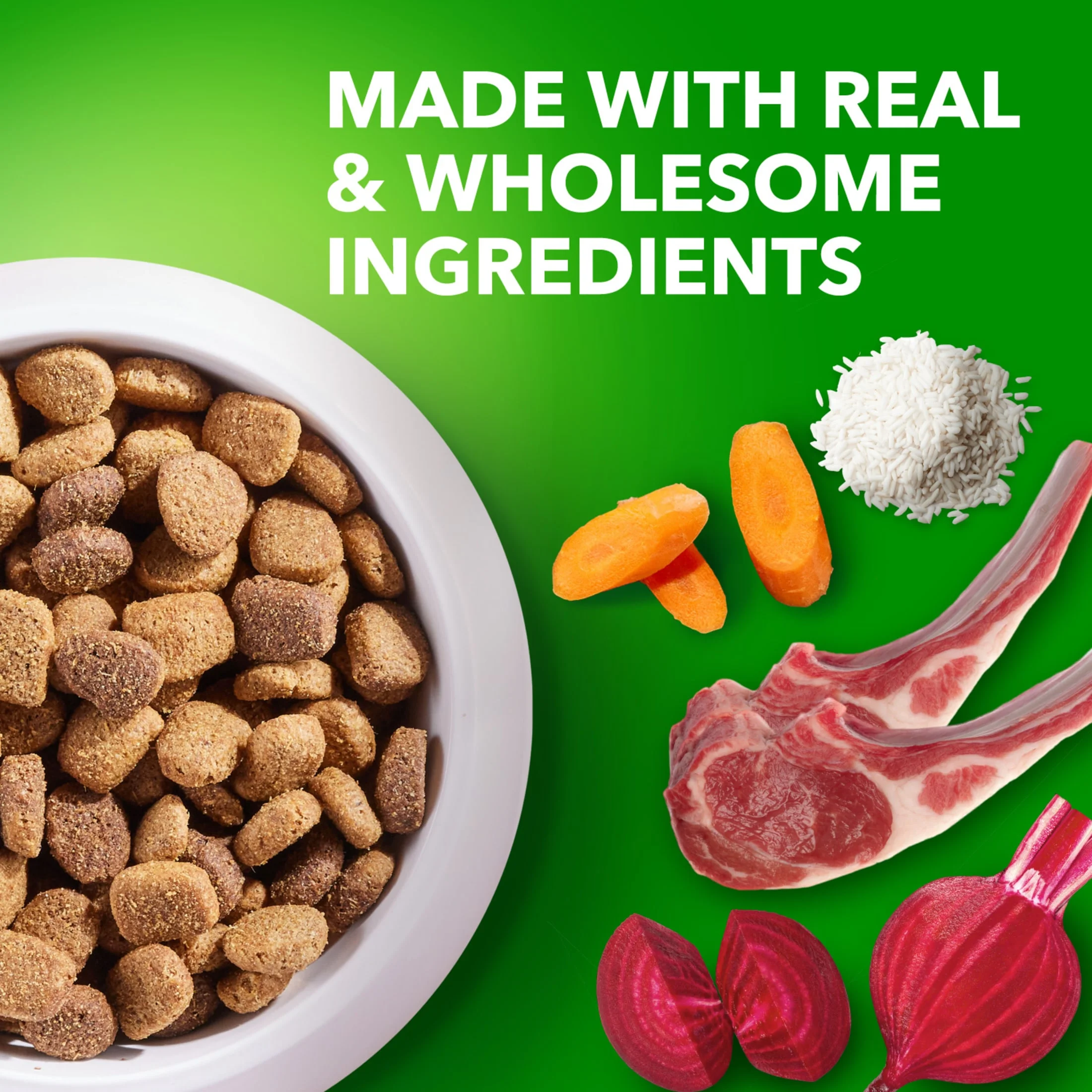 The smaller kibble your dog loves with the nutrition you can count on from Iams. Iams Proactive Health Minichunks Adult Dry Dog Food Lamb & Rice Recipe Dog Kibble a smaller kibble size that makes mealtime more enjoyable for particular pups. This tasty dry dog recipe is made with real lamb as the first ingredient, includes 7 essential nutrients for a healthy heart, and is enriched with antioxidants to help support your dog’s immune health. Iams Minichunks helps your dog stay healthy on the outside, too—Omega-6 fatty acids in this recipe support healthy skin and a soft, shiny coat. Help keep your dog healthy, happy, and playful for life with tailored nutrition from Iams dog food.