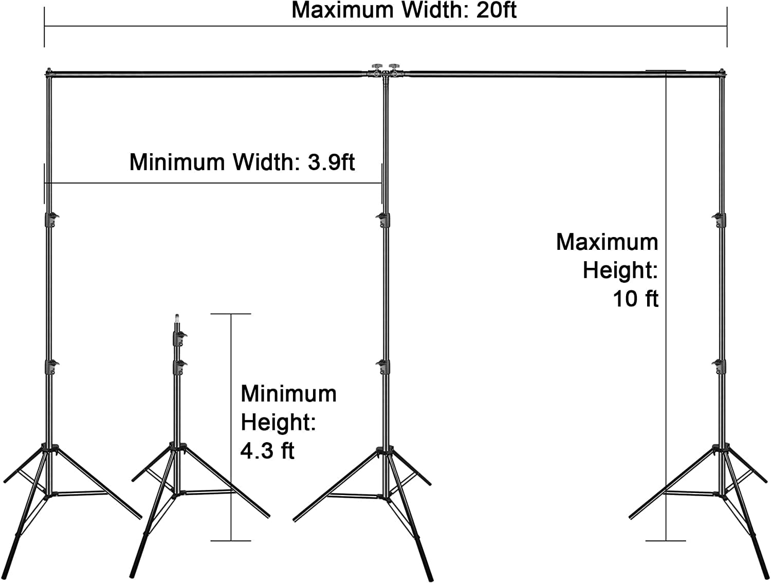 IAZ 10x 20 ft Adjustable Heavy Duty Photography Backdrop Stand,Two Completely Different Building Modes,Ideal for Product Photography Wedding Background Banquet Arrangement Portrait Heavy Duty Light Stand Aluminum alloy construction Max Height: 10 ft Min Height: 3.9 ft Spigot: 1/4″ Max Load Capacity: 35 lb Heavy Duty Telescopic Crossbar Aluminum alloy construction Max Length: 10 ft Min Length: 3.9 ft Sections: 3 Spring Clamp 4.5 inches long 3/4″ x 5/8″ rugged, pivoting pads Weight: 8.8 oz Maximum Opening: 2 inch mouth Material: Nylon Carry Bag Premium quality nylon material with sturdy zipper Easy to transport and store the whole kit.