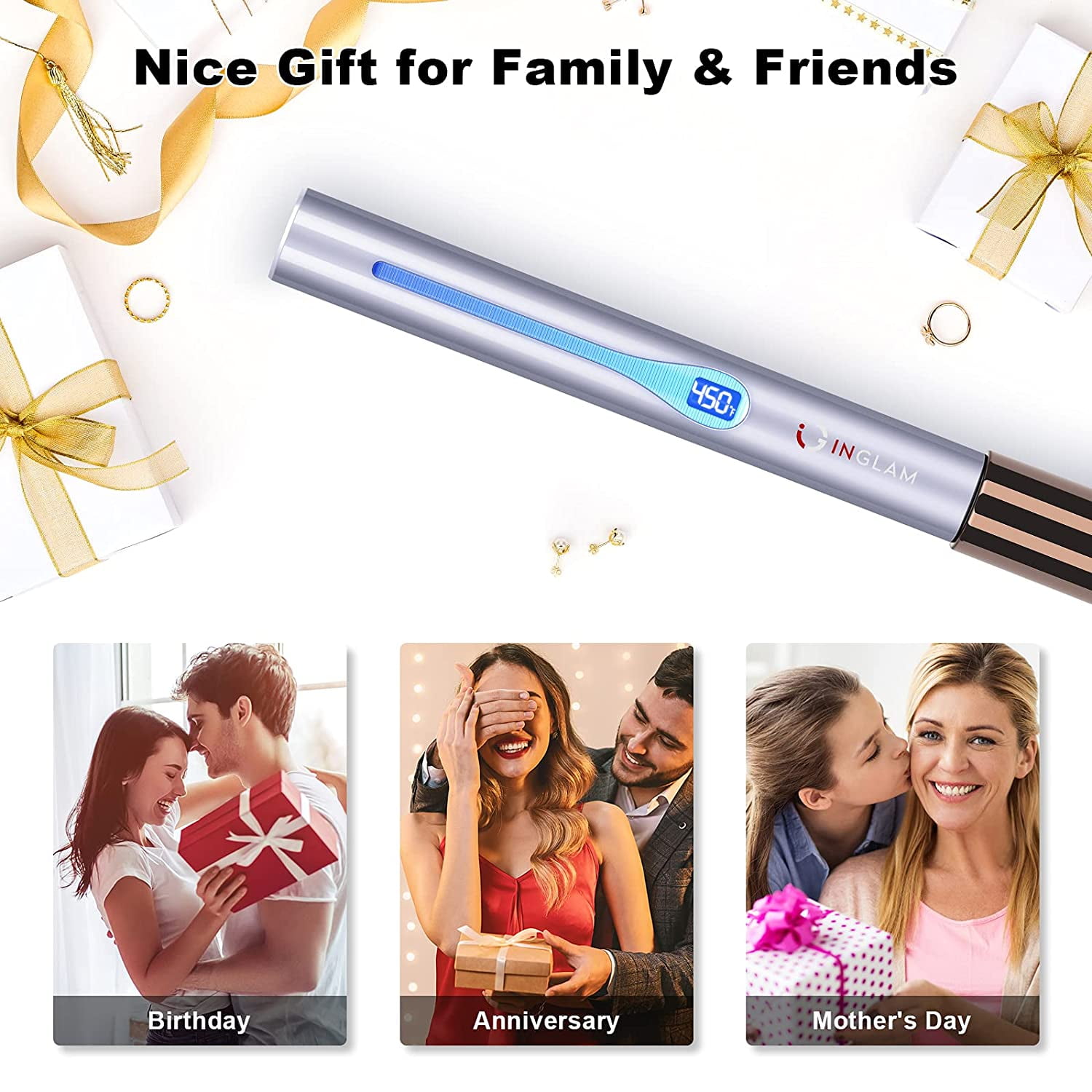 2 in 1 Hair Straightener Flat Ion – The 2 in 1 hair straightener and curler featured by a rounded and sleek shape helps to temper and wrap the hair to meet your different needs, allowing you to change various hairstyles every day and saving money on buying another curling iron. Safe and Efficient – This hair straightener flat ion has a 60-min auto shut off function which can enhance your safety. It heats up instantly in only 30 seconds and controls the temperature thermostatically to get your hair straight or curly in a snap, saving time and reducing moisture loss. Infrared Negative Ionic Care – This hair straightener is equipped with an anion outlet that emits millions of negative ions to seal moisture in your hair. Ceramic tourmaline and infrared plates can activate water molecules to repair hair scales, providing an frictionless gliding and making hair soft and shiny. Fit for All Hair Types – This flat iron with 11 adjustable temperatures(250℉ – 450℉) displaying on the LED screen can work on all hair types and textures. You can choose the optimum temperature to suit your hair directly. Warm Service For User – We have strong R&D team design more better hair beauty tools,all items are inspected 3 times to make sure good quality. Any inquiry if have,you will receive positive response within 12 hours.Any IG INGLAM brand products,enjoy 30 days trial & No-worry return and 1 year warranty,we also do after-sale interview to learn your proposal on our hair iron etc..
