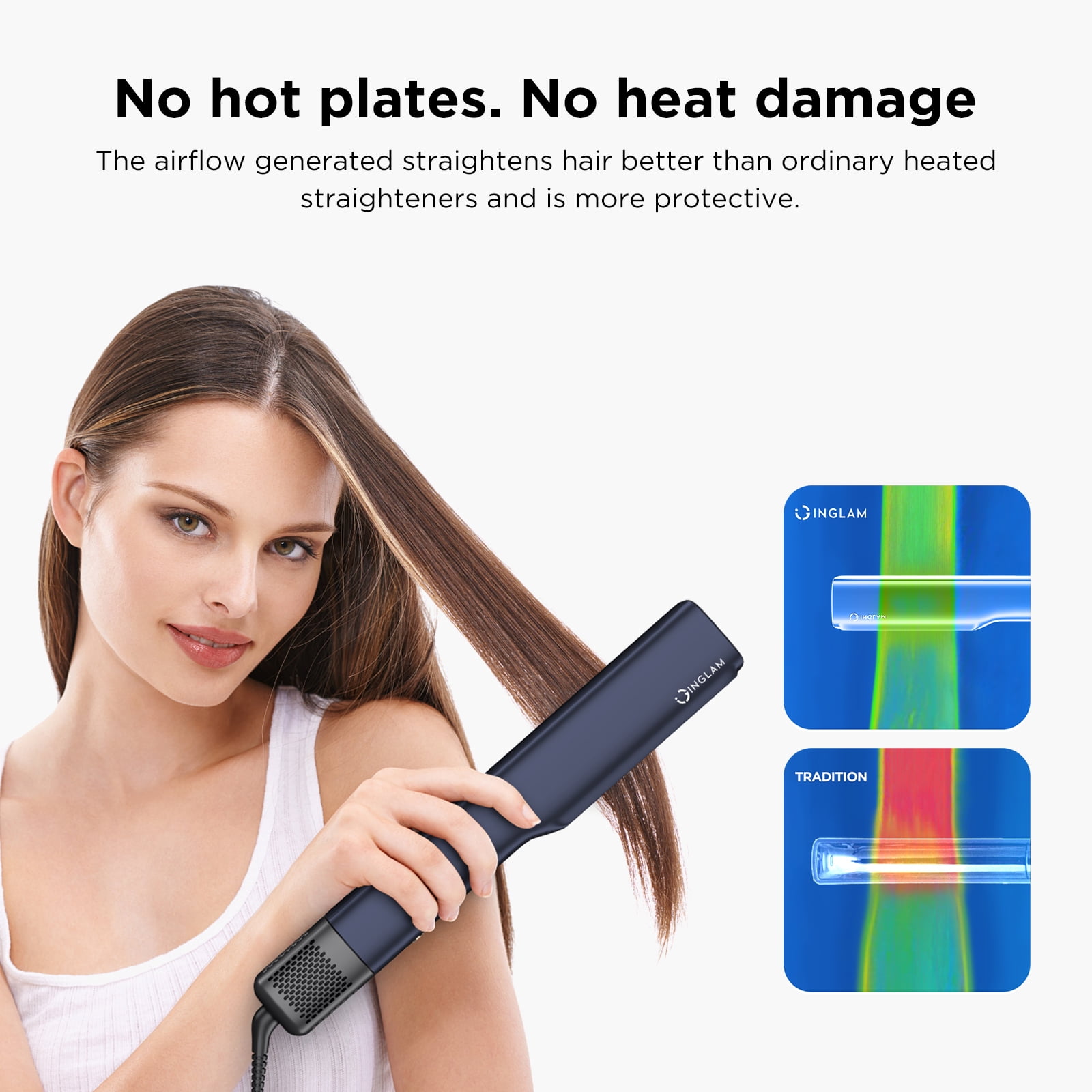 IG INGLAM Air Straightener – Advanced One-Step Airflow Hair Straightener & Dryer, Airflow Flat Iron with 200 Million Negative Ions, Prussian Blue