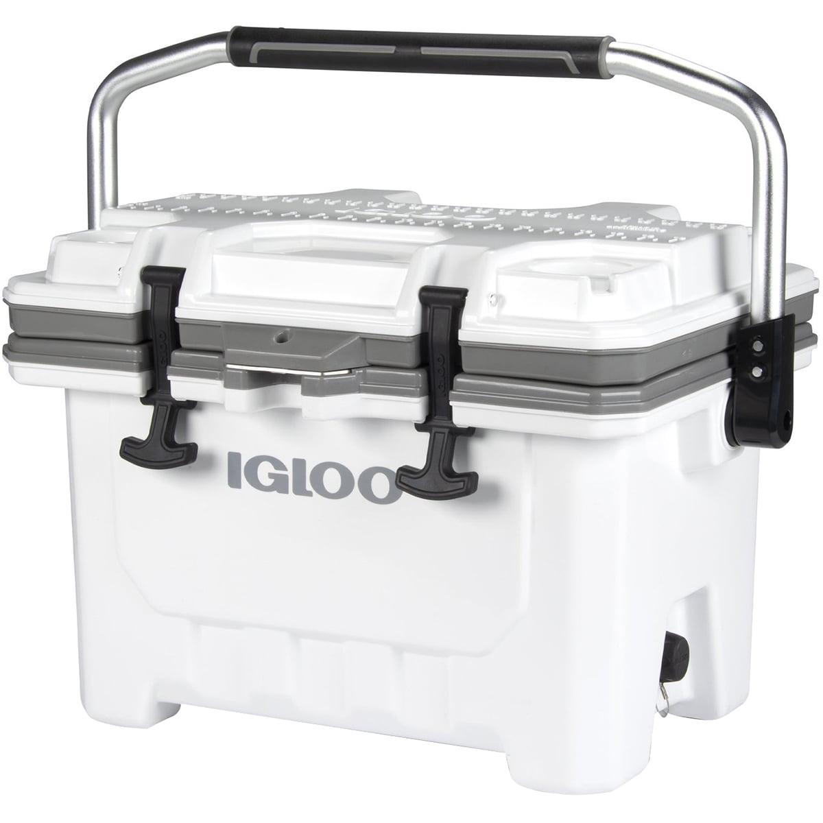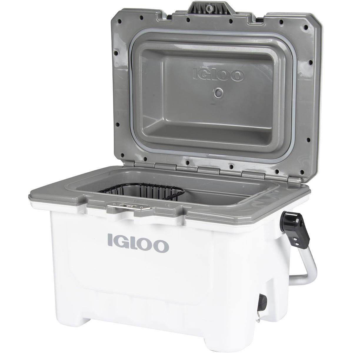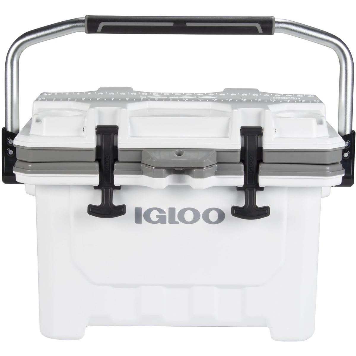 The lightweight yet heavy-duty IGLOO IMX 24 QT Hard Cooler is the high-performance cooler that countless adventurers rely on. Its injection-molded design is super durable with amazing ice retention but weighs 40% less than coolers with similar performance. Ultratherm insulation in the body and lid provides up to 4 days of ice retention. The rubberized lid latches also lock in the cold. IGLOO included a locking plate, non-slip base and comfortable, sturdy swing handle for extra security. The fully functional, built-in features like a bottle opener, cup holders, lockable lid, wire basket and fish ruler keep you having ice-cold refreshments and worry-free fun.Capacity: 24 quarts / 22 litersFits 35 twelve oz. cansUV inhibitors prevent sun damageCool Riser Technology improves cooling performance by elevating cooler body away from hot surfacesSturdy swinging handle lets you easily carry the cooler with one or two handsAnti-skid feet on the base keep the cooler stable and secure on smooth surfacesLid includes a lock loop with stainless steel locking plate for added security when used with a standard-size lock (not included)Four self-draining cup holders are built into the lid to keep your drinks secure and within reachSelf-stopping lid hinge detent keeps the lid open to help it from accidentally slamming shutThreaded drain plug gives you the option to hook up to your water hose for easy drainingCare InstructionsWipe interior and exterior surfaces clean before storing and between uses. To prevent stains and odors, empty cooler of contents after use. Light dirt
