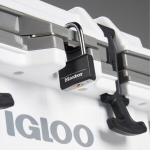 – Lockable lid loops for maximum security with a standard size lock also allow extra gear to be tied to the cooler for easy transport; includes stainless steel locking plate and bottle opener