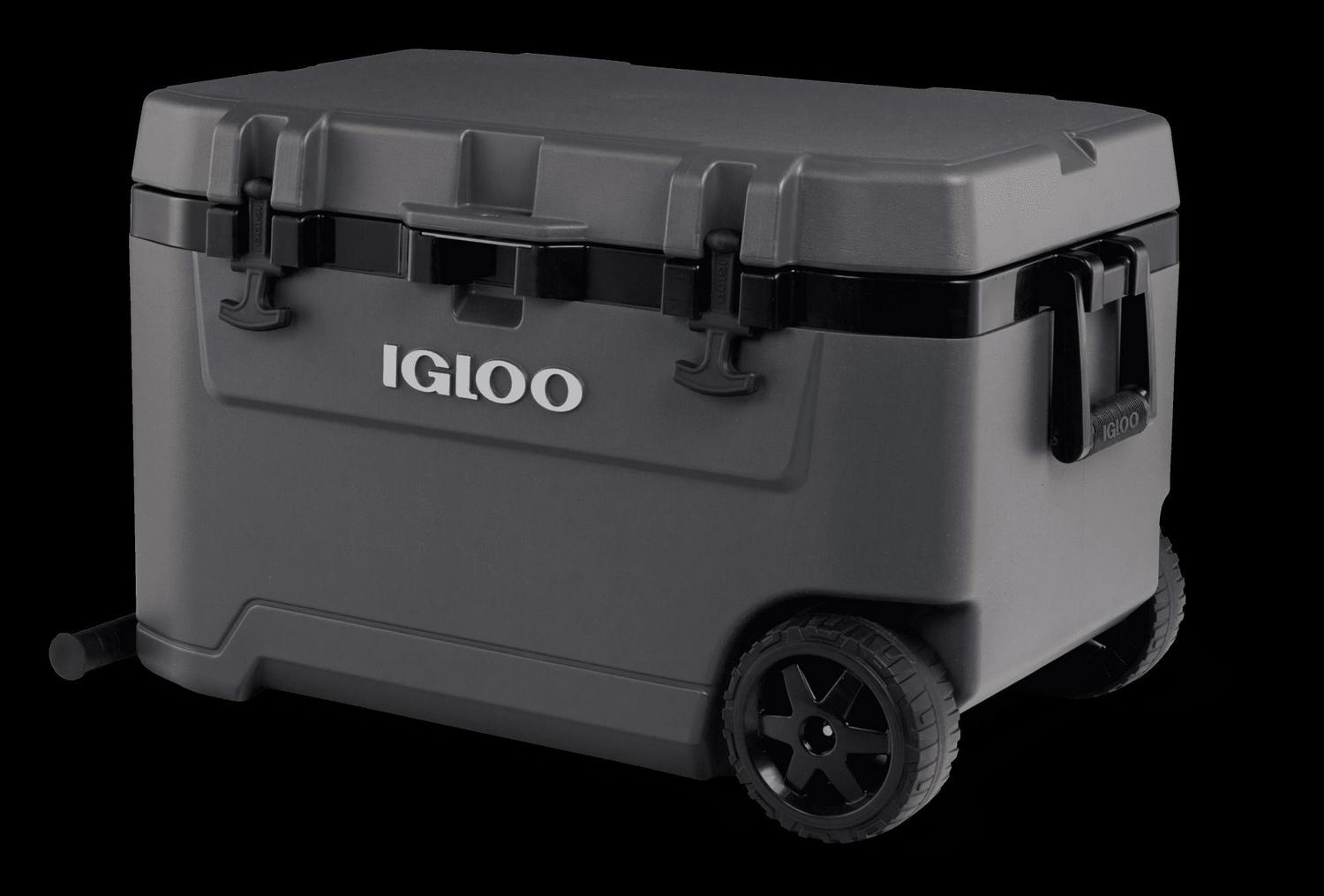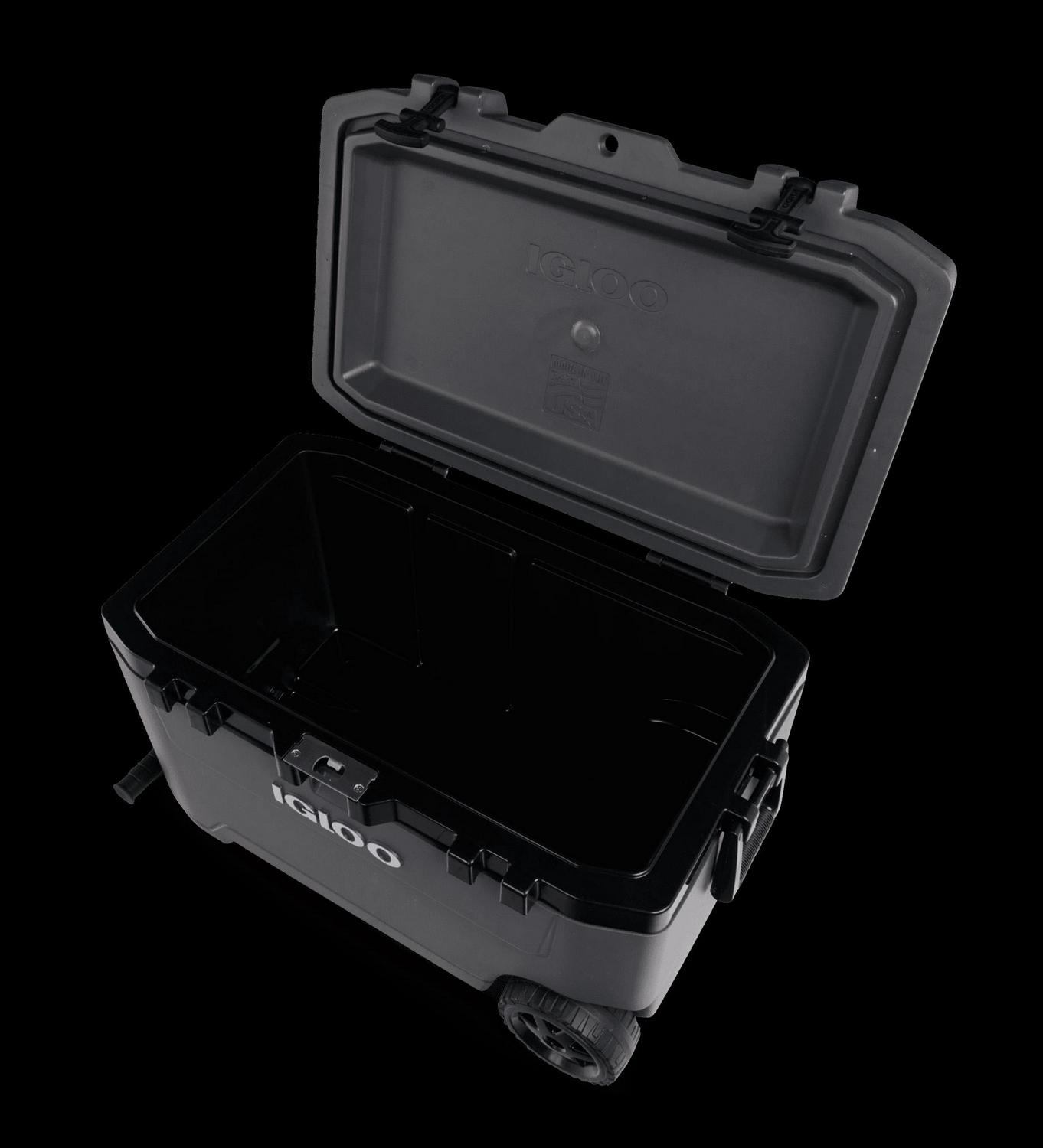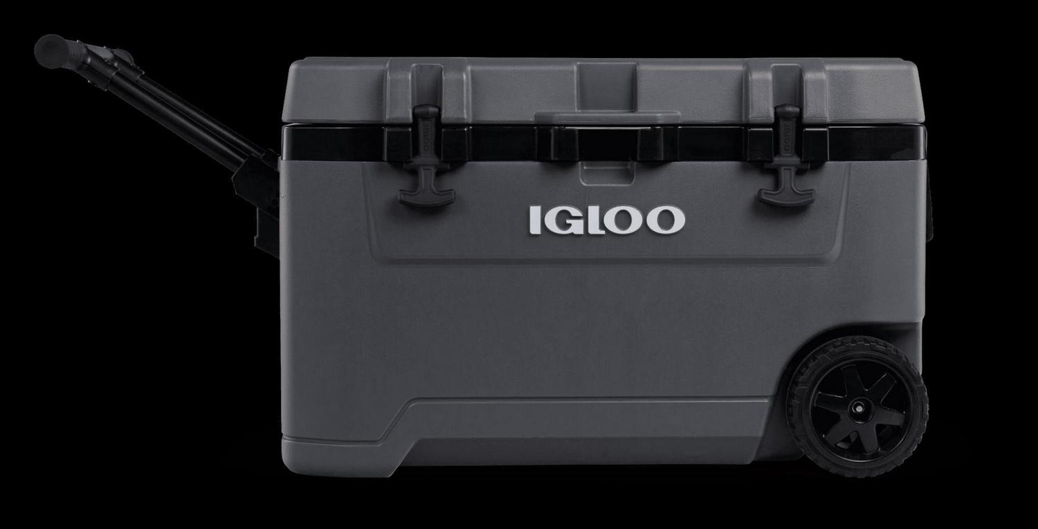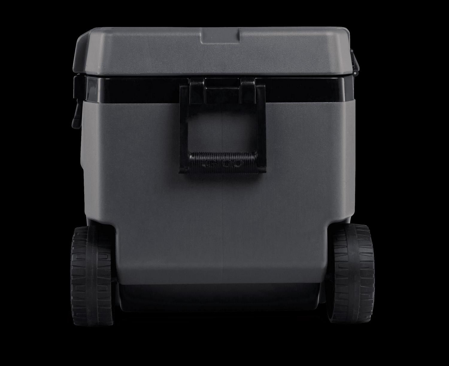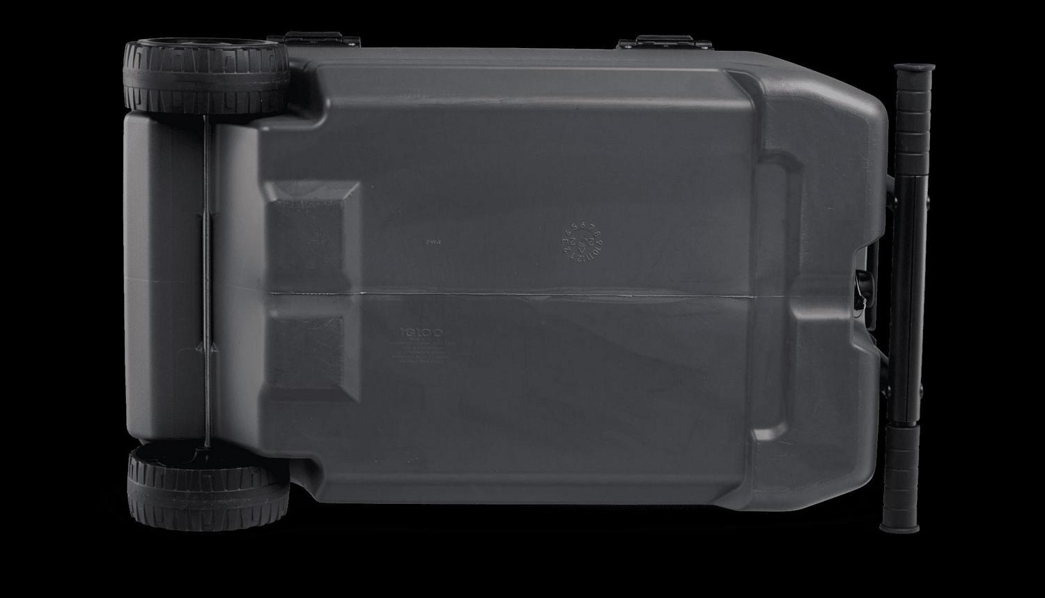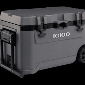 – The Igloo Overland Series 72 QT Roller Wheeled Cooler in Charcoal Gray