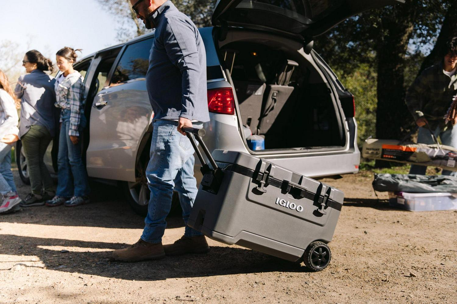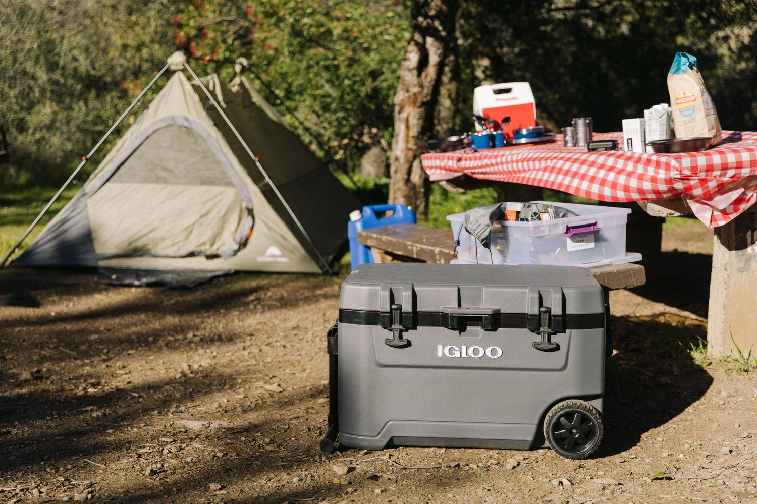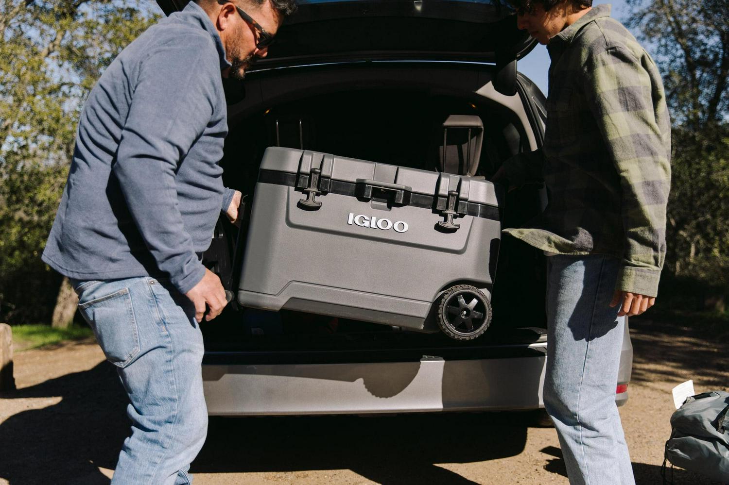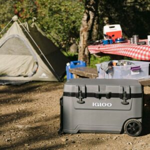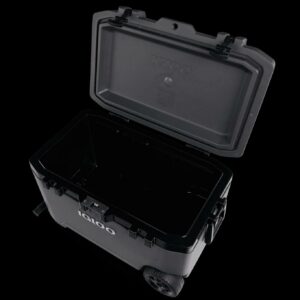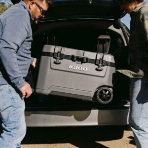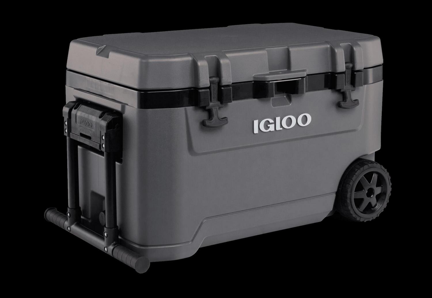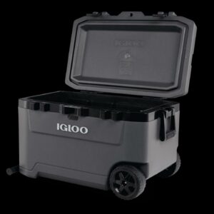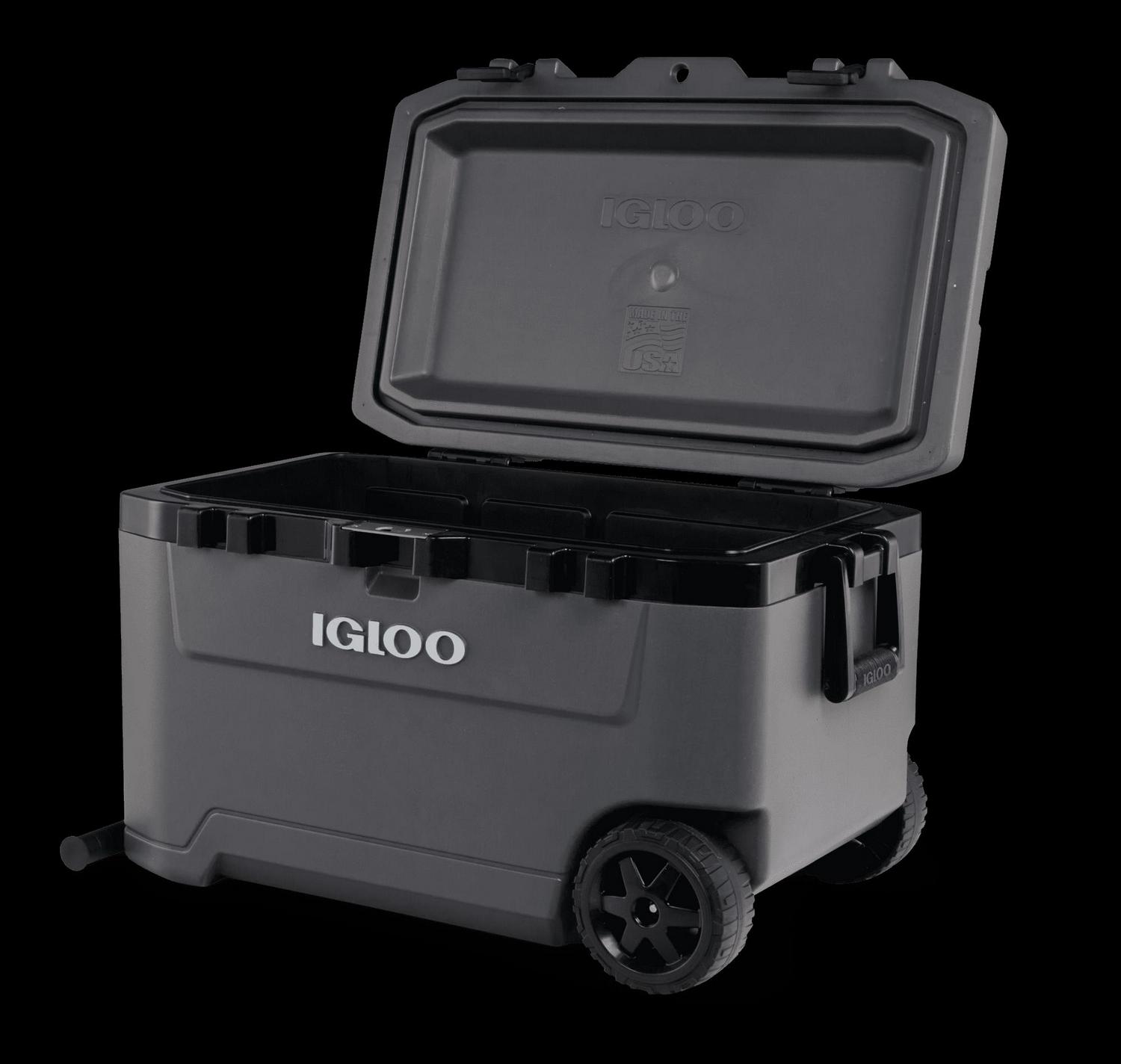 – The Igloo Overland Series 72 QT Roller Wheeled Cooler in Charcoal Gray