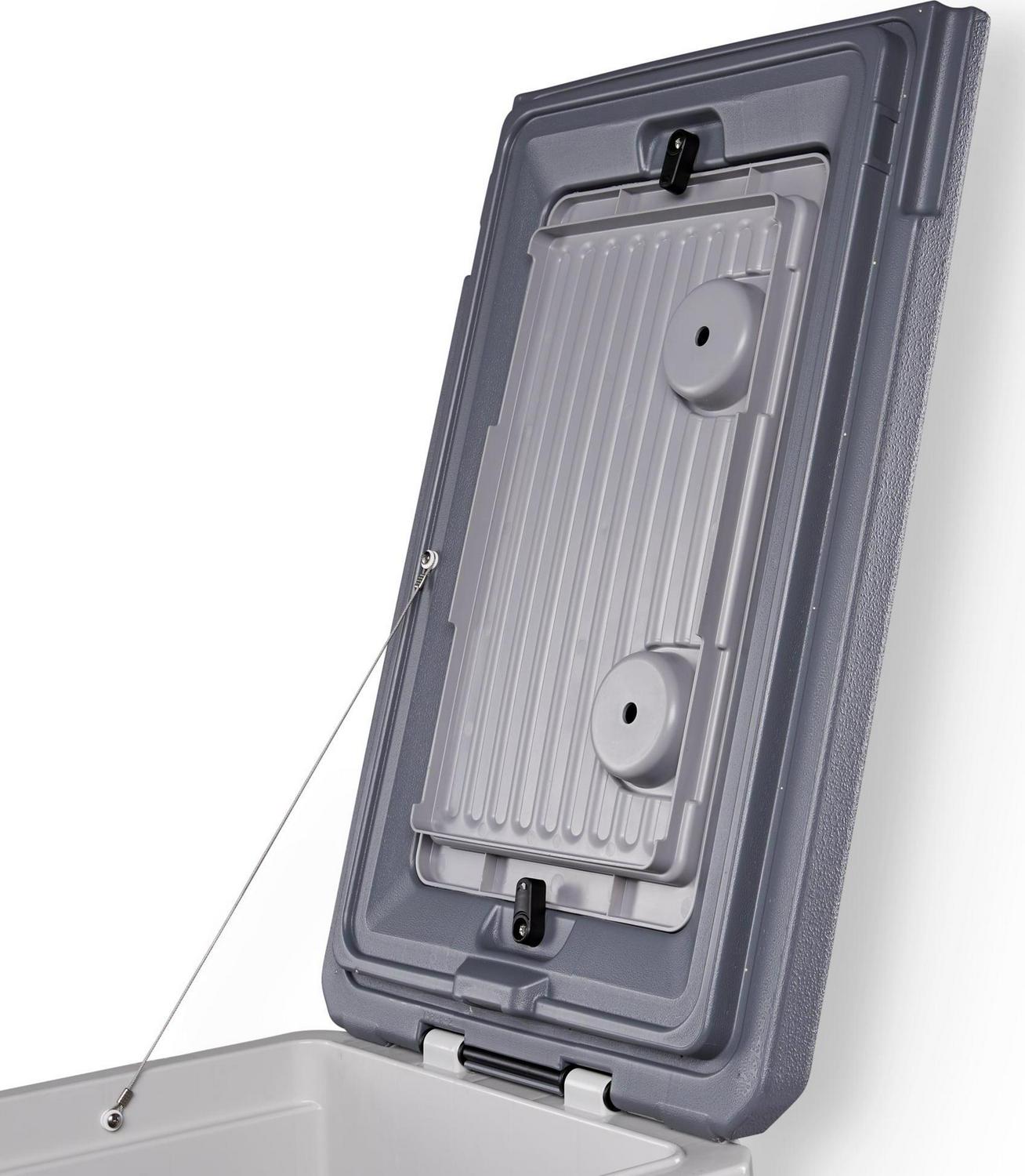- Four self-draining cup holders in the lid keep your drinks secure & within reach