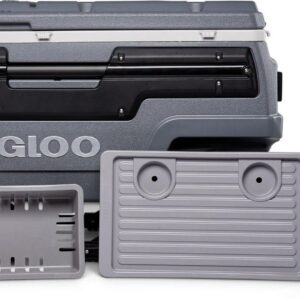 With the 70QT Gray Igloo Trailmate Cooler, nothing gets in fun s way. We built our up-for-anything cooler so it ll roll right over rough terrain like it s on a paved path. It s loaded with tons of handy features all-terrain smooth-ride wheels, telescoping handle, thermecool insulation, bottle openers, storage areas and way more so you can easily get to your destination and supply everyone with ice-cold goods throughout the adventure. Spacious 70-quart capacity fits up to 112 cans. Made of Polyethylene. Dimensions: 34.59″ x 19.7″ x 23.61″.