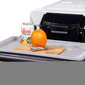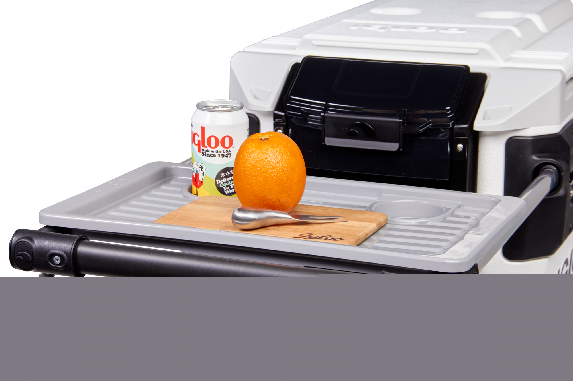 – Removable butler tray placed on the telescoping handle provides an ideal space for serving food & drinks (& stores away under the lid when not in use)