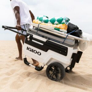 – Igloo 70 quart Trailmate Marine rolls easily to your destination with the ground clearance of 10-inch, never-flat, smooth-ride wheels
