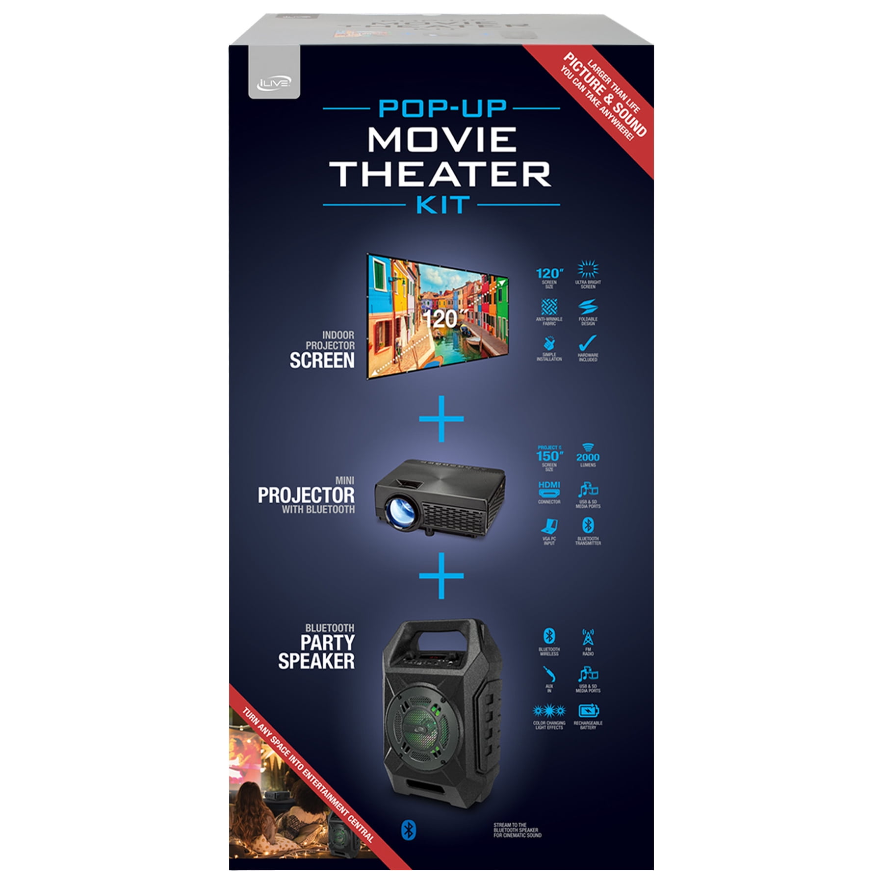 iLive Pop-up Movie Theater Projector Bundle, THE2021BDL,Black