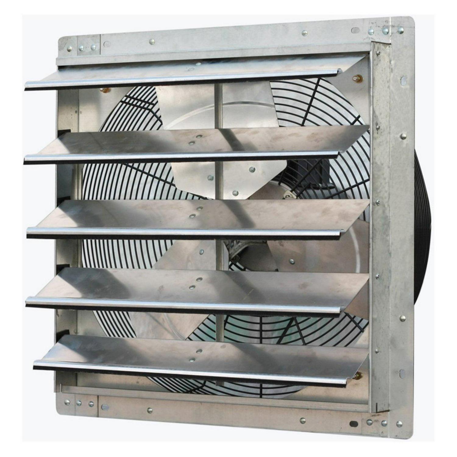 Clear the air in your restaurant, factory, warehouse, barn, or any commercial location when you install the iLIVING Variable Speed Wall Mount Shutter Exhaust Fan. Aluminum blades, wire guards, and automatic shutters create a long lasting fan that will pull excess heat, moisture, and nasty odors from your worksite. The motor is enclosed and thermally protected and permanently lubricated for a smooth functioning machine. It is fully assembled and the electrical hardwiring is ready to be installed. The fan comes in various sizes to fit your needs.