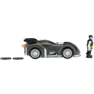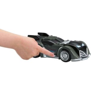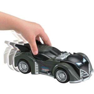 Villains of Gotham City better beware of Batman! Kids’ imaginations are behind the wheel of this new Batmobile. It’s revved up and ready to take down Gotham City crime. Press a button to pop out the jet engine. Roll it along, the “flames” spin and the engine rocks! And just when villains least suspect it, press the lever to launch disks!