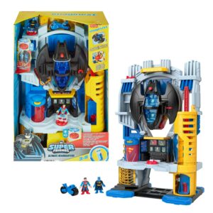 Preschool kids can act out epic Justice League adventures with the Imaginext DC Super Friends Ultimate Headquarters playset from Fisher-Price. This 2 foot-tall Hall of Justice playset features 4 floors of play for young crime-fighters to explore, cool lights and sounds, a hidden projectile launcher and jail cell, plus a transforming Batwing and push-along Batcycle. Kids will love sending Batman and Superman racing into action to defeat the bad guys again and again.