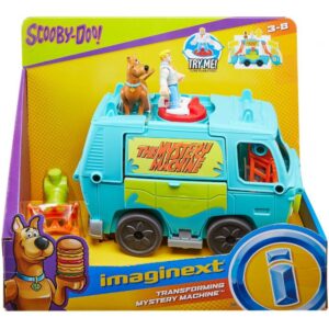 How does the MYSTERY INC. Gang travel from one mystery to another In their super groovy MYSTERY MACHINE, of course! FRED rides up front as young sleuths roll the 2-in-1 vehicle along searching for the next mystery to solve, with SCOOBY hanging out in back. When it s time to hop into action, turn the Power Pad to transform the vehicle into the gang s MYSTERY MACHINE headquarters playset, complete with jail cell and projectile launcher! Where will the gang travel to next That s for your young sleuth to decide! Imaginext Imagine What s Next!