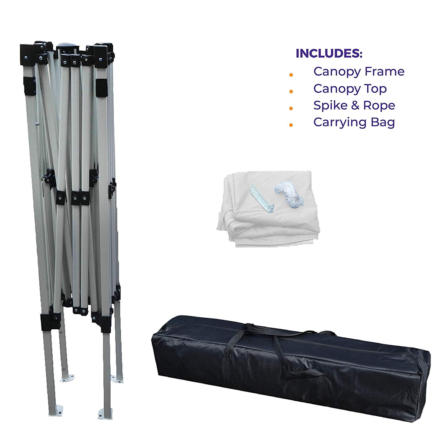 SLANT LEG CANOPY: 10′ x 10′ slant leg canopy has three adjustable height settings and provides 62 square feet of shade coverage. Maximum height is 8 feet with a 5’10” head clearance. QUICK & EASY SET UP: Canopy sets up fast for variety of uses such as beach, park, outdoor concerts, street fairs, farmers markets, weddings, tailgating, sporting events and more! QUALITY CONSTRUCTION: Powder coated steel canopy frame and 210 weight denier canopy top that is water resistant. RECREATIONAL USE: Slant leg canopy is designed for temporary use and is not intended for long-term permanent cover. Canopy will not withstand windy, rainy or snowy conditions. INCLUDES: 10 x 10 slant leg canopy, sun wall, spike and rope, and carrying bag