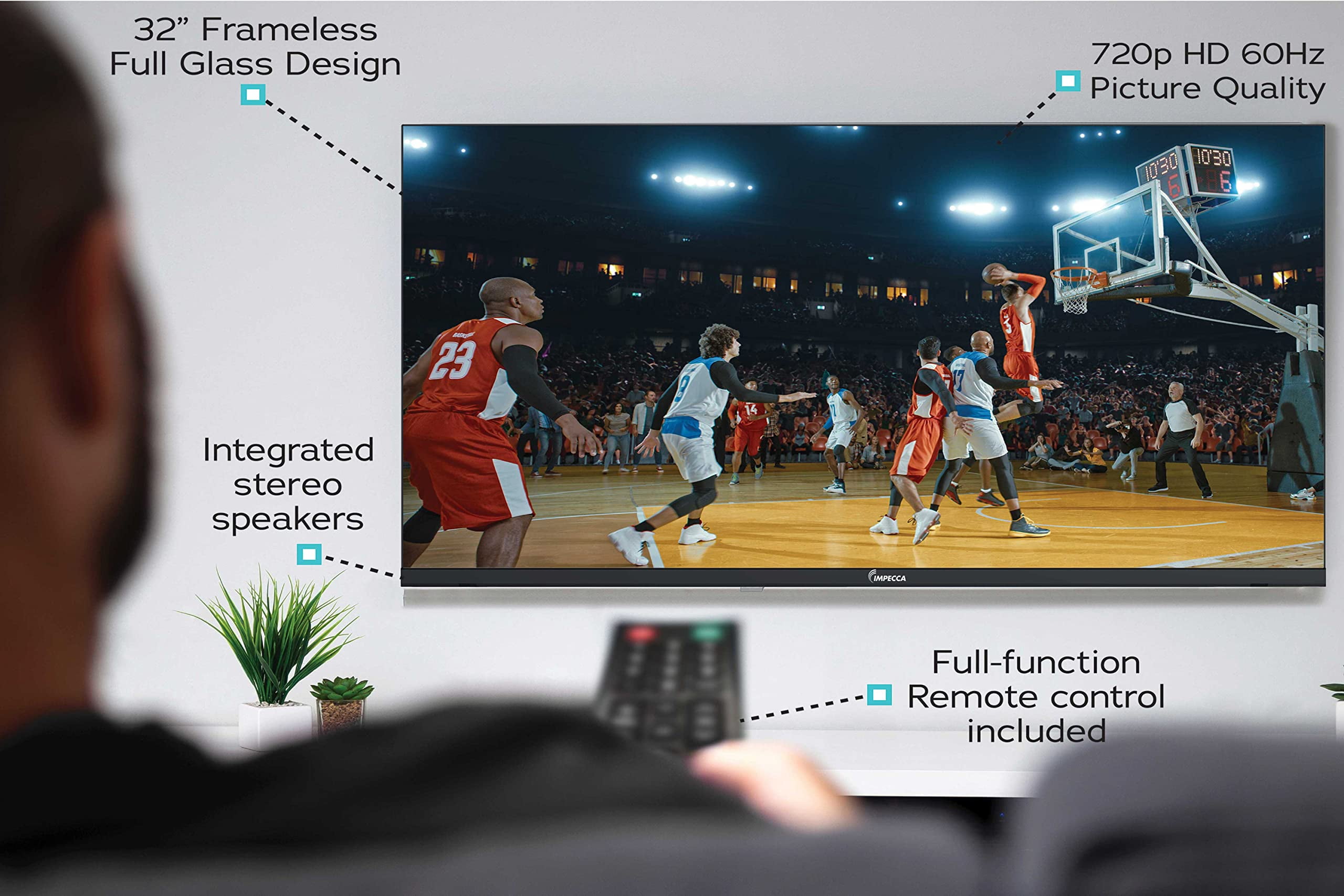 Impecca 32 Frameless TV, HD Ready, 720p Picture Quality, Built-in Stereo Speakers, 2xHDMI, 2xUSB Ports, Full Function Remote Control, Wall mountable VESA Compatible, Energy Star -TL3202H