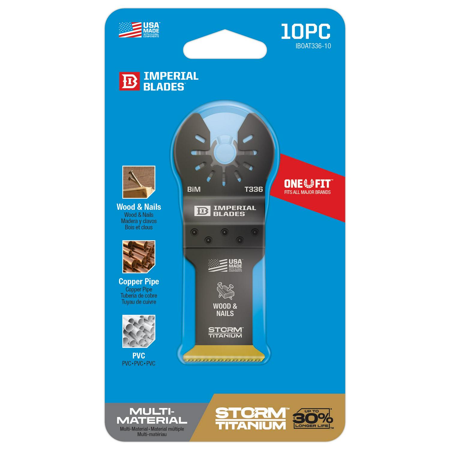 Imperial Blades IBOAT336-10 ONE FIT 1-1/4 Titanium Enhanced Wood/Metal Oscillating Saw Blade, Multi-Tool Accessory, 10PK