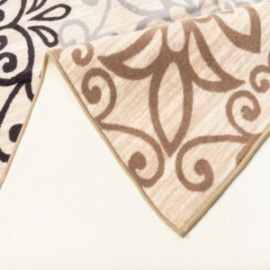 Integrate an elegant flourish to your living space with the Minka Area Rug. This screen-printed design boasts a sophisticated floral medallion pattern in grey, black, brown, and taupe which flows seamlessly across a beige backdrop to evoke timeless beauty to any casual or formal décor style. This family-friendly design is crafted from a durable 100% Nylon fiber construction and a 0.18 (4.5mm) rug thickness that is perfect for everyday use. These items are machine washable & rug-able.