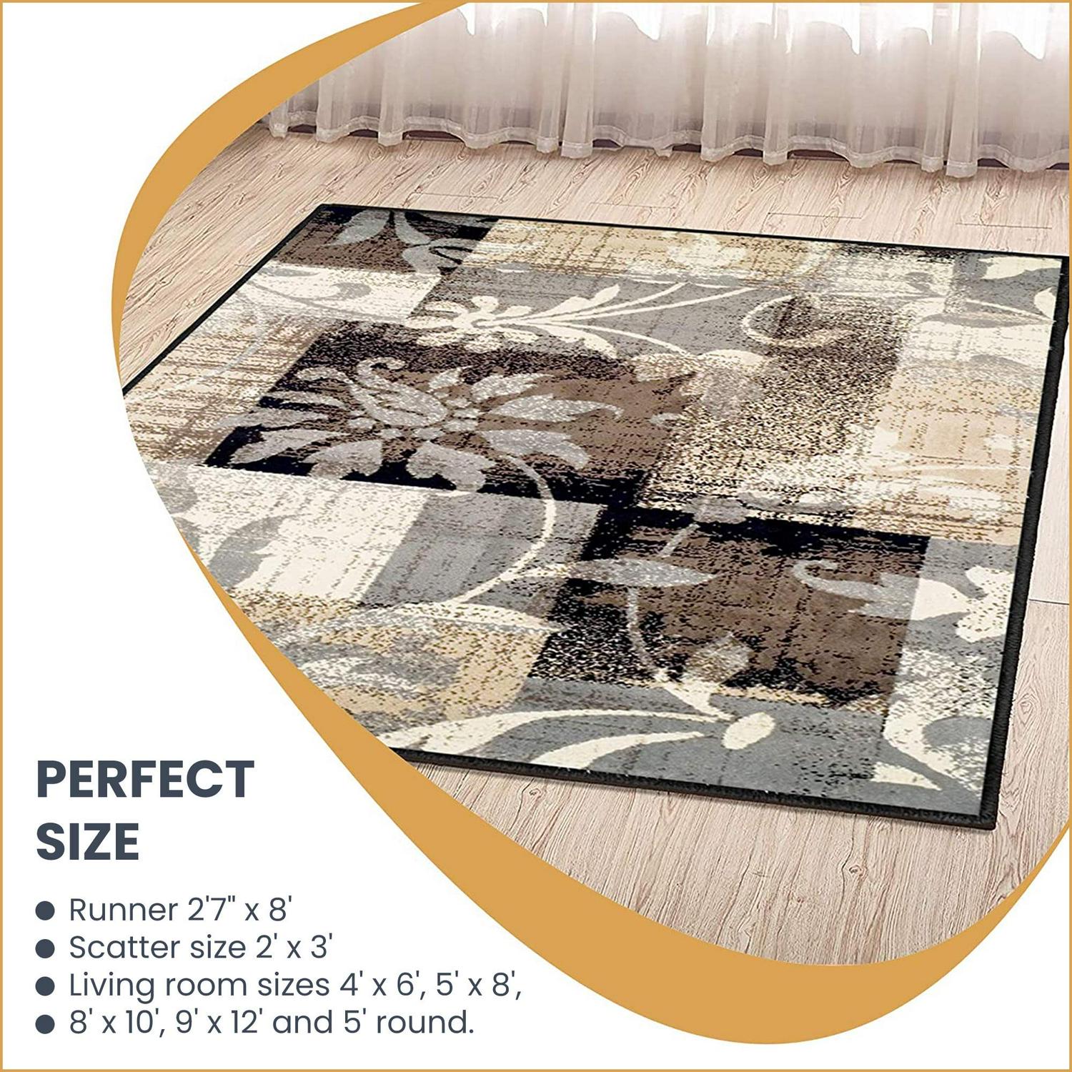 Finish your space with our beautifully designed Messager Indoor Area Rug. This well-balanced design features oversized scrolling vines that peek through a geometric grid to create a modern floral patchwork pattern that coordinates effortlessly with traditional, transitional, and modern decors. Crafted from premium 100-percent Polypropylene fibbers, this rug can handle the busiest rooms of your home while remaining cozy underfoot. The 0.31-inch rug thickness cleans easily, can easily fit under most doors, and allows chairs sitting atop this rug to slide easily. Finished with a well-made jute backing, this rug is a long-lasting and durable option for homes with children and pets.