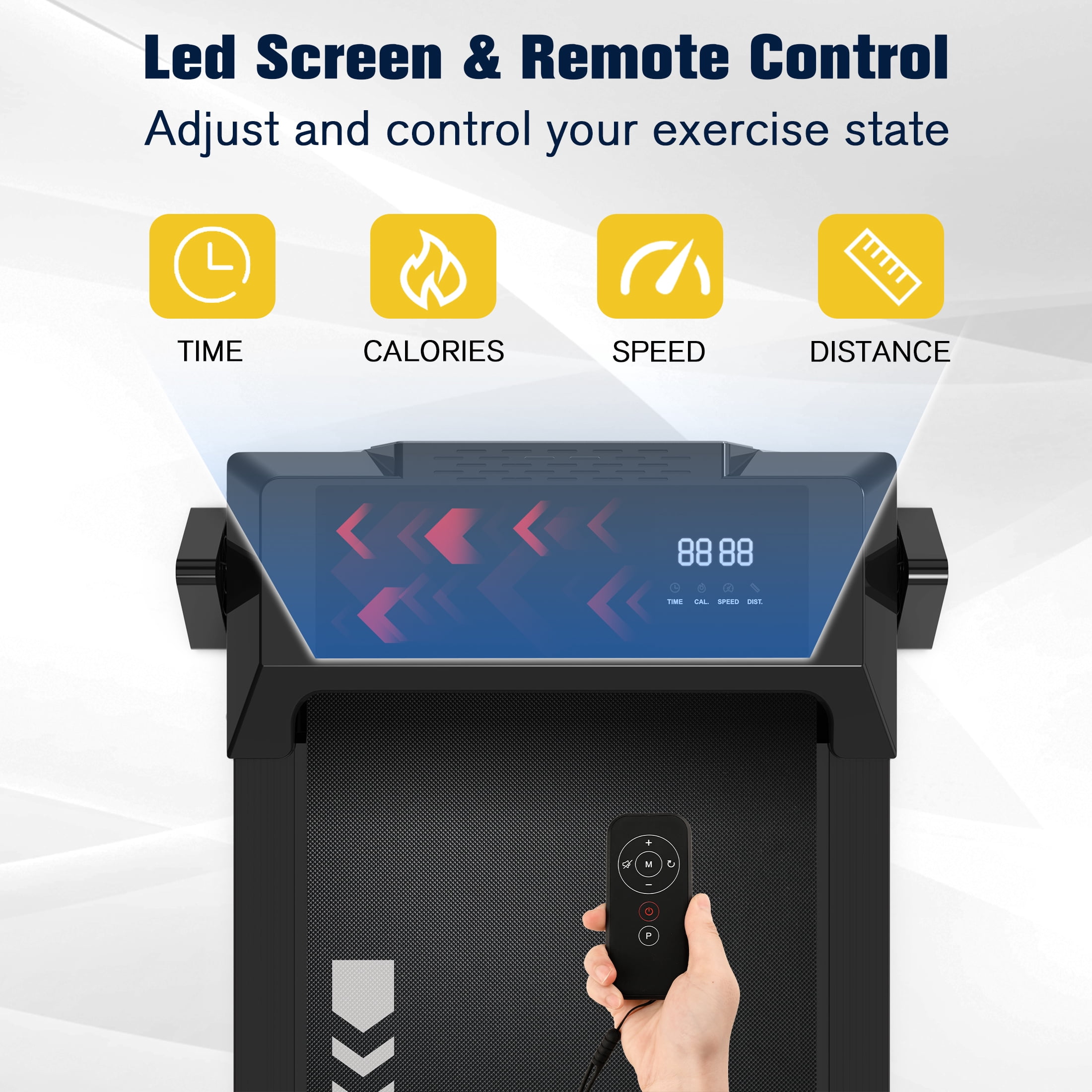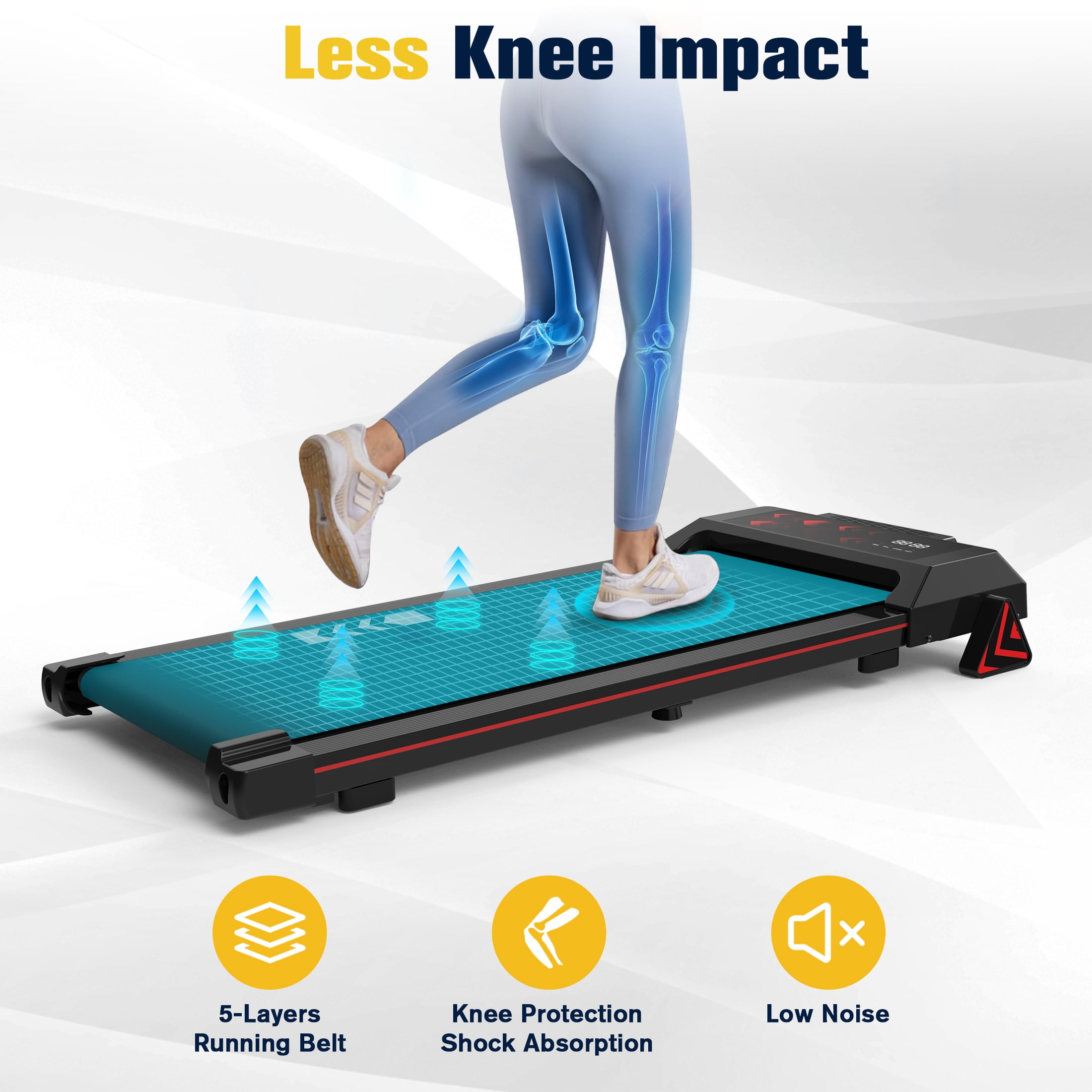 Discover a new level of fitness with our adjustable slope options, perfect for home or office workouts. 【Enhanced Incline Technology】Elevate your routine with a 3-stage incline (0.3°, 1°, 2.2°) for targeted muscle strengthening. 【Optimal Shock Absorption】Experience comfort and quietness with a 5-layer belt and 4 anti-slip pads, protecting floors during walking and jogging. 【Pause & Resume Functionality】Effortlessly pause your workout, and resume where you left off with auto-save progress. Note: Data resets to 0 after reset/shutdown. 【Powerful 2.25HP Motor】A robust motor supports up to 265 lbs, ensuring a quiet and comfortable Work-From-Home (WFH) experience, seamlessly blending productivity with fitness. 【Intuitive LED Display】Track your progress with real-time data on time, calories, speed, and distance for comprehensive monitoring. 【Compact Under-Desk Treadmill】Focus on home use with a compact design. The speed range (0.5-4MPH) suits walking, jogging, and running. Perfect for daily exercise or staying active at work.