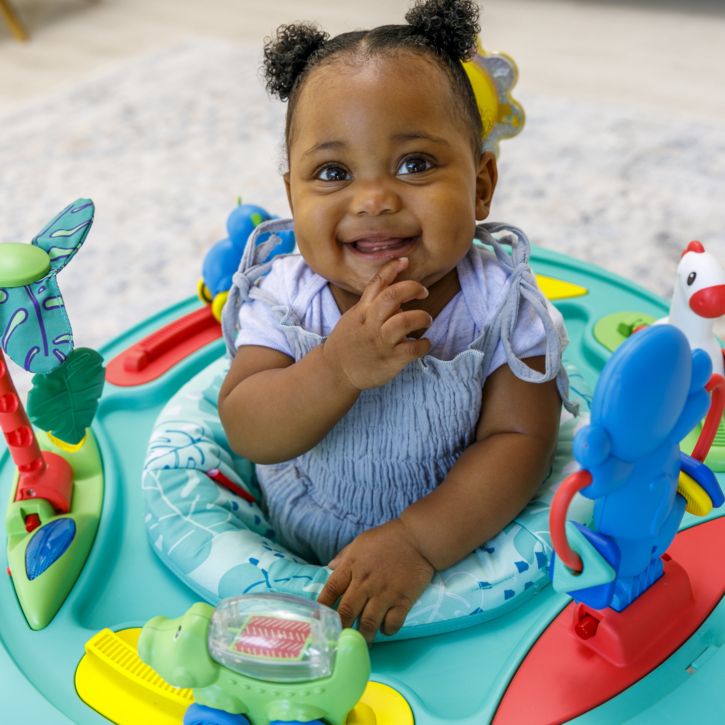 Age grade 4 months to 5 years Entertainer transforms into a stand-and-play activity table Three height positions grow with baby Includes 6 engaging toys with lights up buttons and musical effect For the seat position, children should be under 25 pounds and/or 30 inches tall. Must be able to sit upright unassisted. Once children can walk independently, discontinue using this product as a seat and switch to table mode Measures 27.95 in x 26.77 in. At Infantino, we believe every baby deserves access to quality products, this is why we design our products to be unisex so all little ones can enjoy them