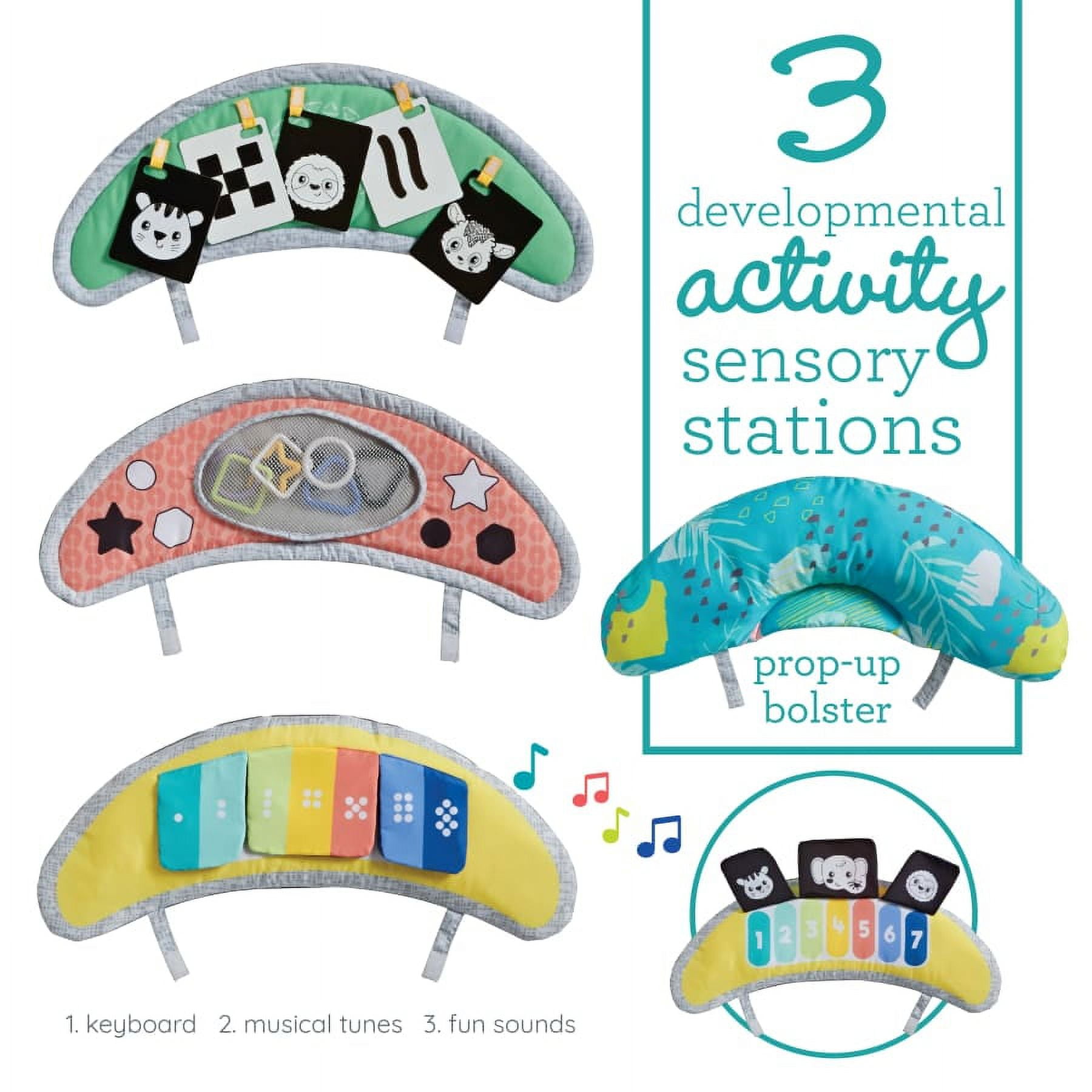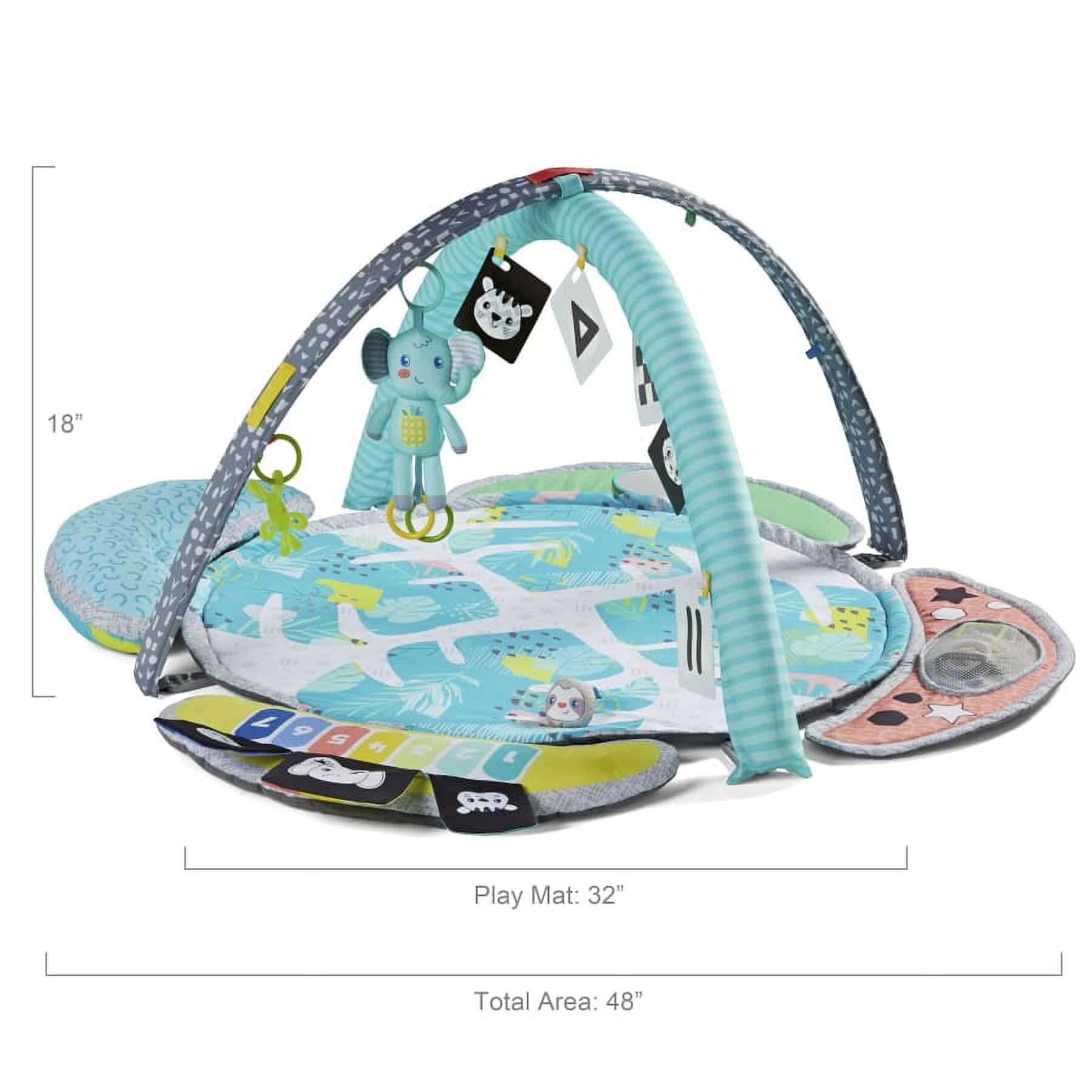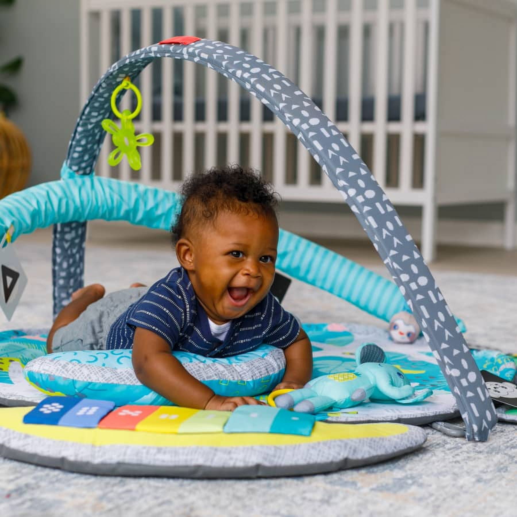 Brings learning & developmental play front & center for babies & toddlers with 3-play modes & 5 baby must-have basics that encourage gross motor skills and cognitive development Linkable teether, 6 dual-sided flash cards, multi-sensory activity pal, wearable rattle, giant selfie mirror, prop-up bolster, 3 removable activity stations including electronic piano and gigantic 32″ mat with adjustable arches offer customizable play This gym is packaged in easy-to-wrap packaging and is a suitable gift for any occasion including baby showers, birthdays, Christmas, Easter and more At Infantino, we believe every baby deserves access to quality products, this is why we design our products to be unisex so all little ones can enjoy them