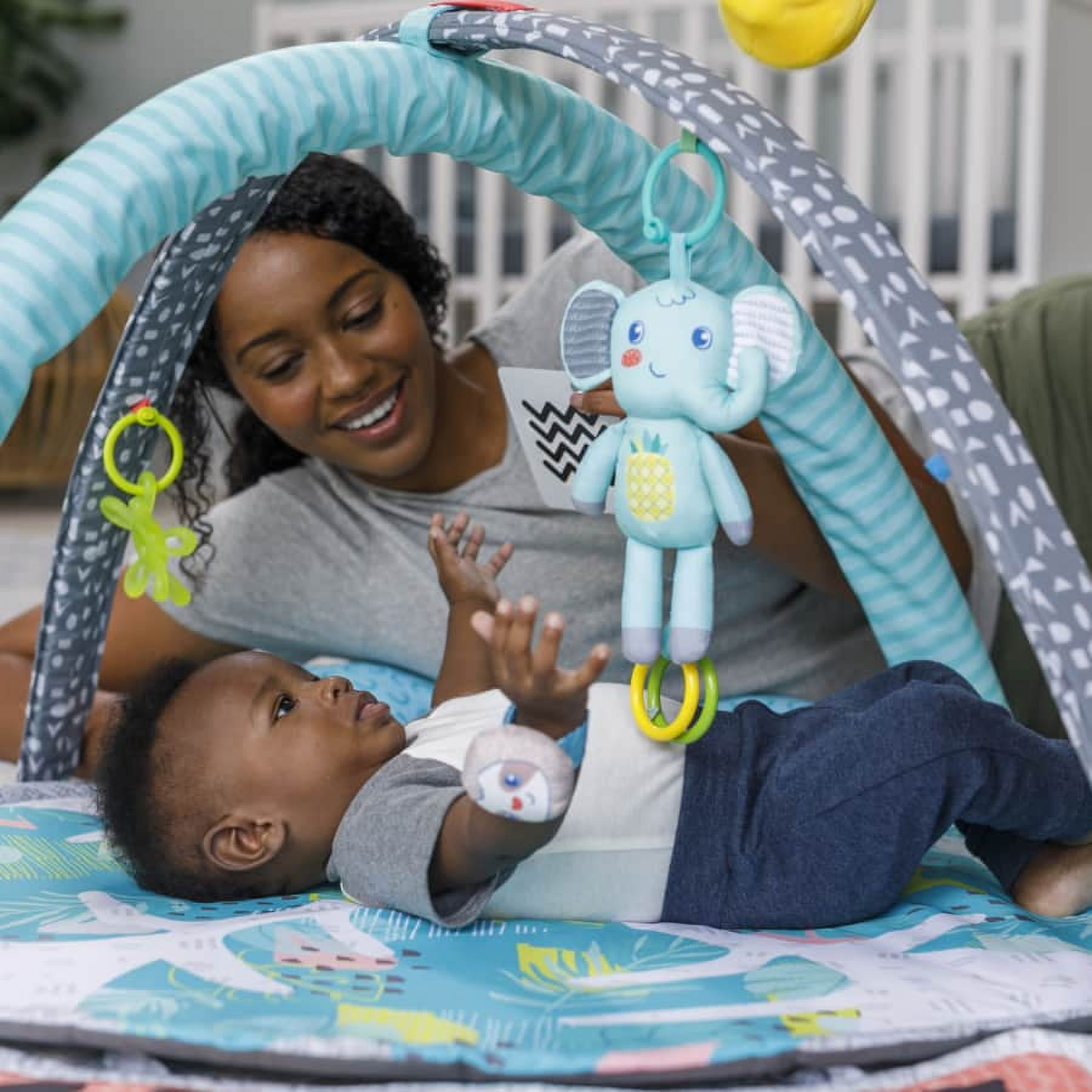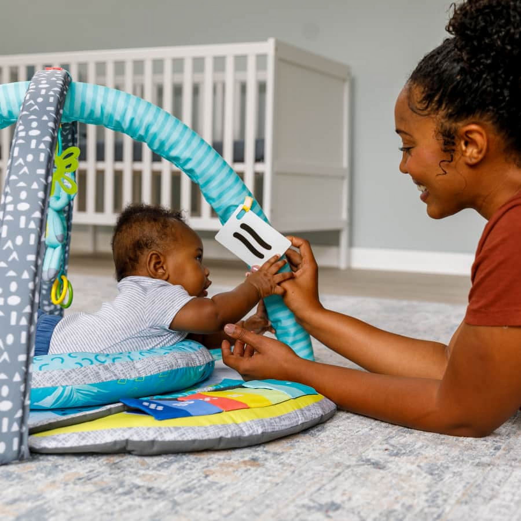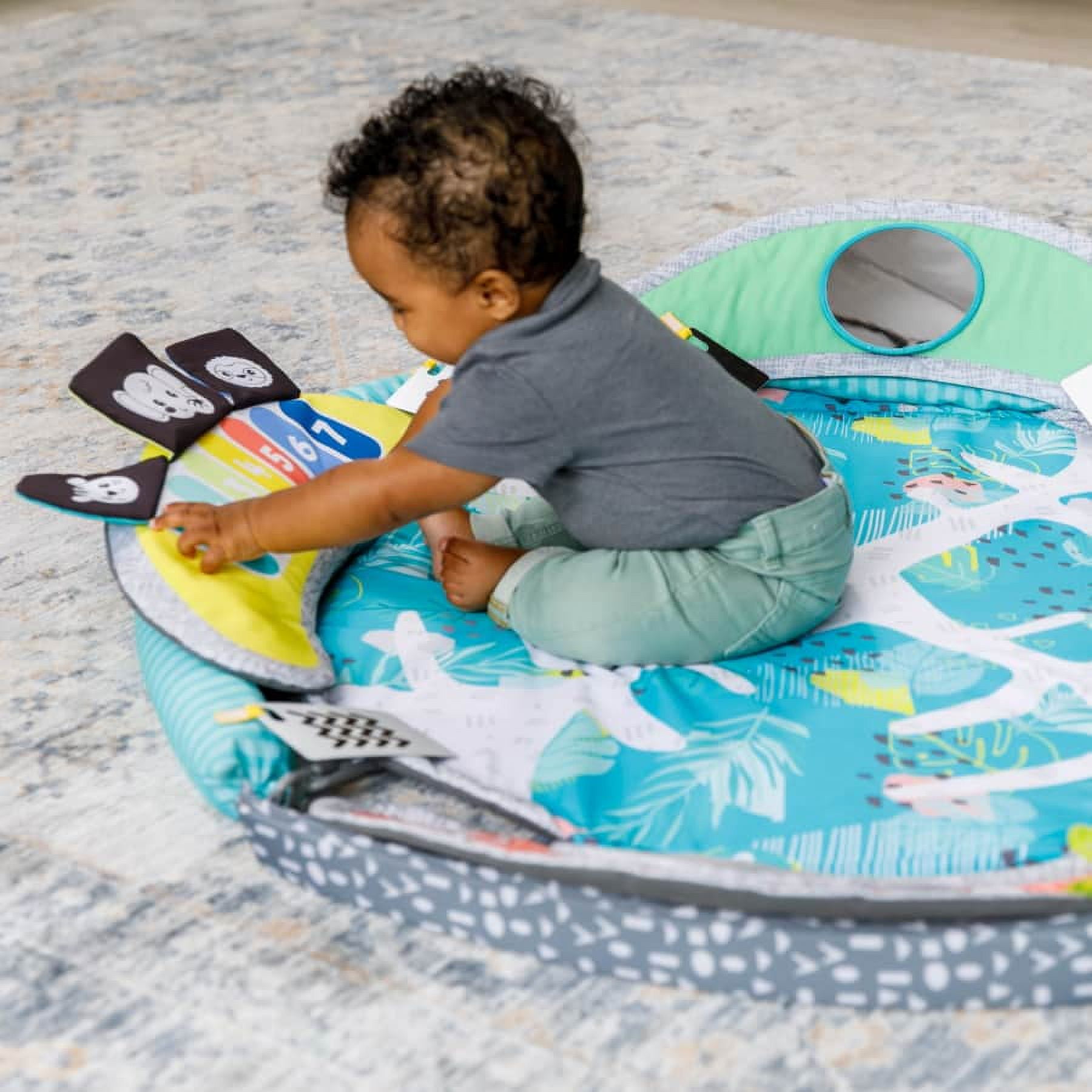 Your little one will love learning & growing with the Infantino 5-in-1 Epic Developmental Gym designed to help babies & toddlers reach their next epic milestone! This one-of-kind gym stimulates the senses with 3 modes, meeting baby where they are in their developmental journey. The overhead play mode offers an expansive 360 Degree play experience for new babies 0-3 months. The tummy time mode playfully aids muscle development with adjustable arches offering a unique experience for babies 3-6 months. The Sit & play mode offers 4 stations enriched with learning activities that boost cognitive development in babies 6-36 months & can easily be removed for on-the-go play. Plus, must-have baby basics means meaningful play all around. There’s nothing else like it & that’s what makes it epic! Plus, must-have baby basics means meaningful play all around. There’s nothing else like it & that’s what makes it epic!