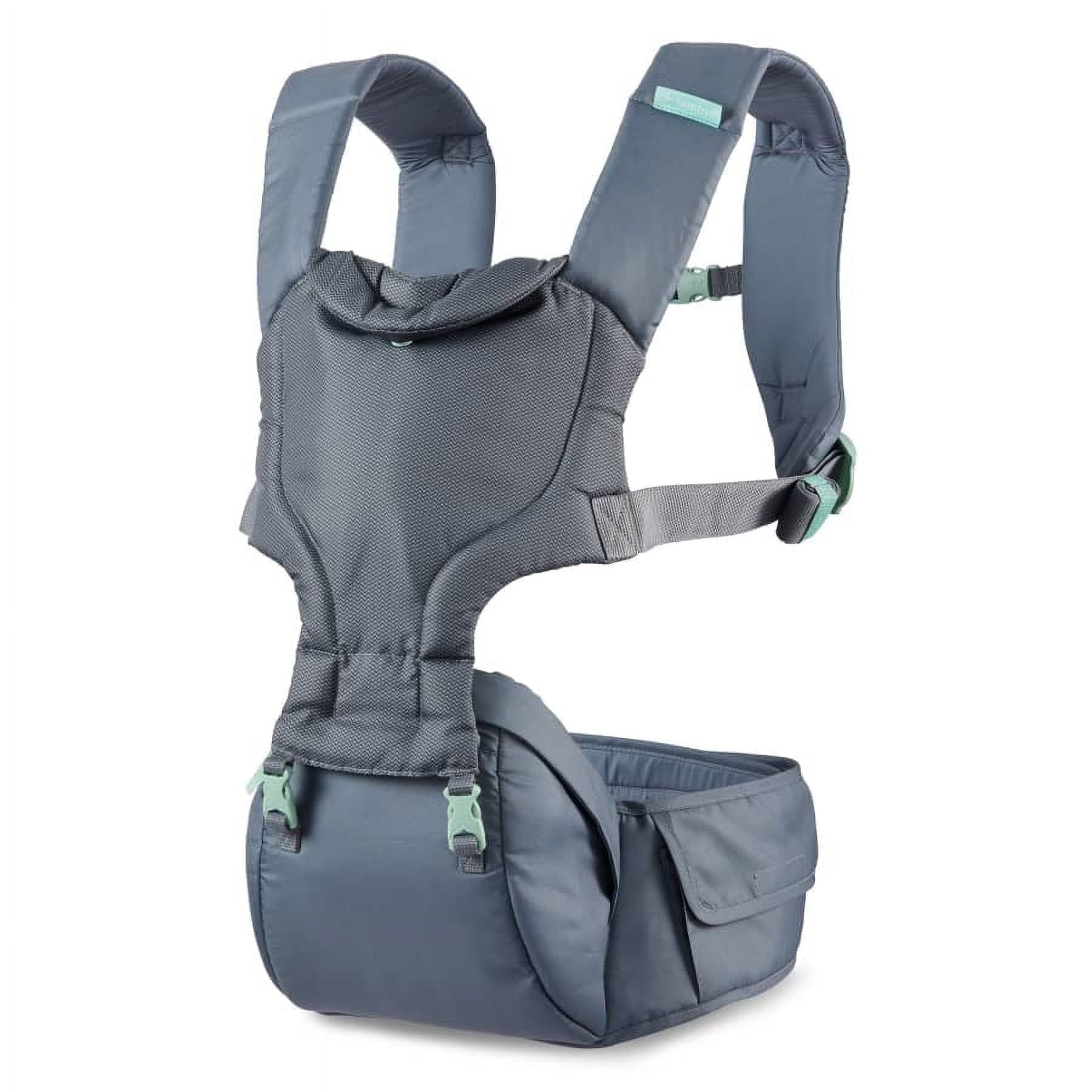 If you’re looking for a way to keep your baby cozy and close while exploring the great outdoors in comfort, look no further than the Infantino Hip Rider 5-in-1 Hip Seat Carrier! Our revolutionary 5-in-1 carrier is designed for maximum flexibility, giving parents and their babies a traditional baby-wearing experience plus more! With its unique transitional modes, the Hip Rider enables you to carry your baby in five ways – from facing-in, out-facing, or back carry; to two new hip seat modes (inward and outward facing) from infant to toddler. And thanks to adjustable padded straps, a full lumbar waist belt, and a supportive hip seat, this carrier gives extra support that helps distribute your little one’s weight while lightening the load for you. With its optional head support, your baby will be comfortably cradled as you explore the world together. The easy-access side storage pocket lets you keep your essential items nearby too! Changing between a carrier and the hip seat is effortless with our easy on/off zip and buckle system! The hip seat gives your back and shoulders that much-needed break, allowing you to “take the weight off” by distributing it evenly to your hips instead. After exploring, fold this lightweight and versatile carrier into the front packable pouch for compact portability. With such remarkable flexibility and convenience, it’s no wonder why the unisex 45 lb Infantino Hip Rider 5-in-1 Hip Seat Carrier is a fantastic way for parents to explore with their little ones!