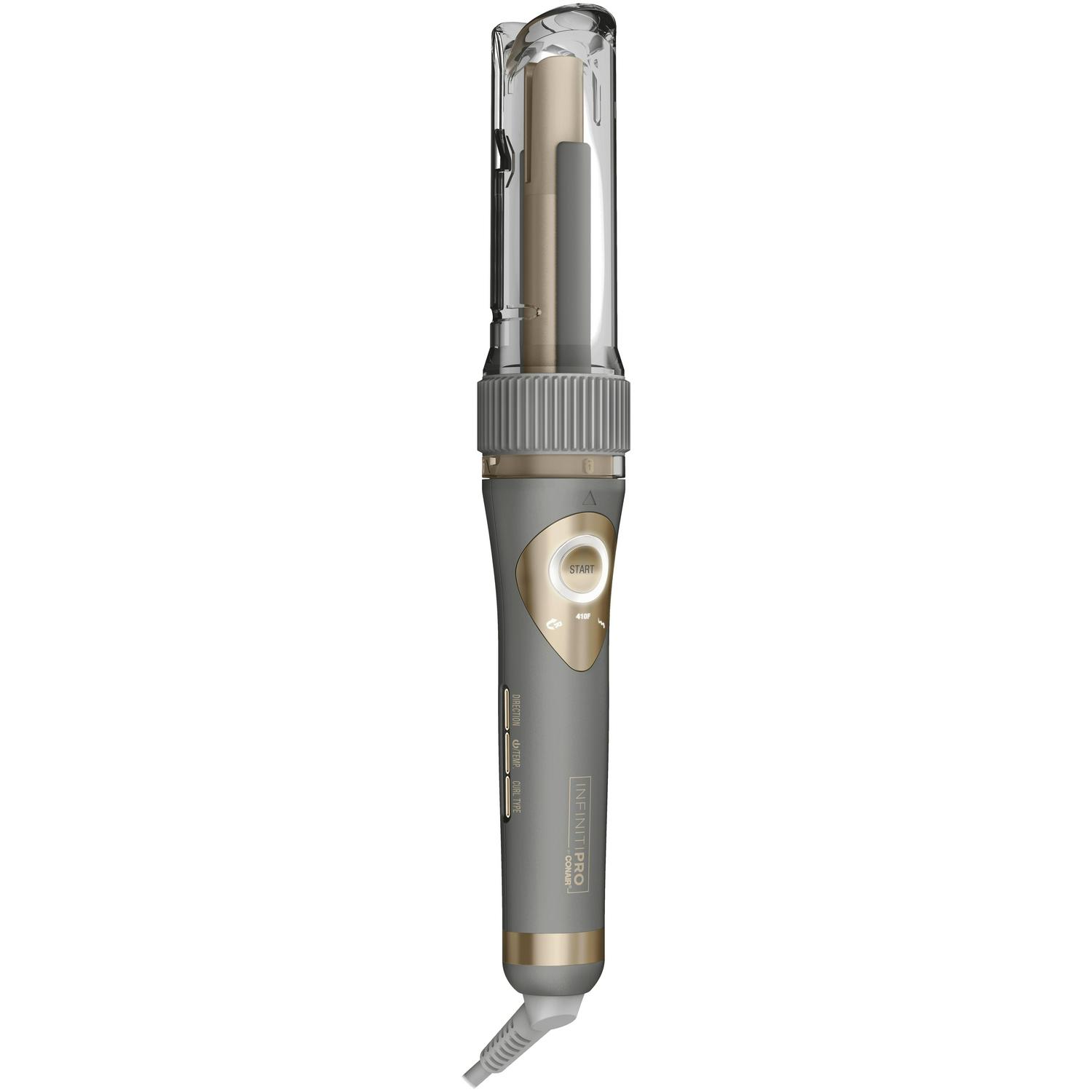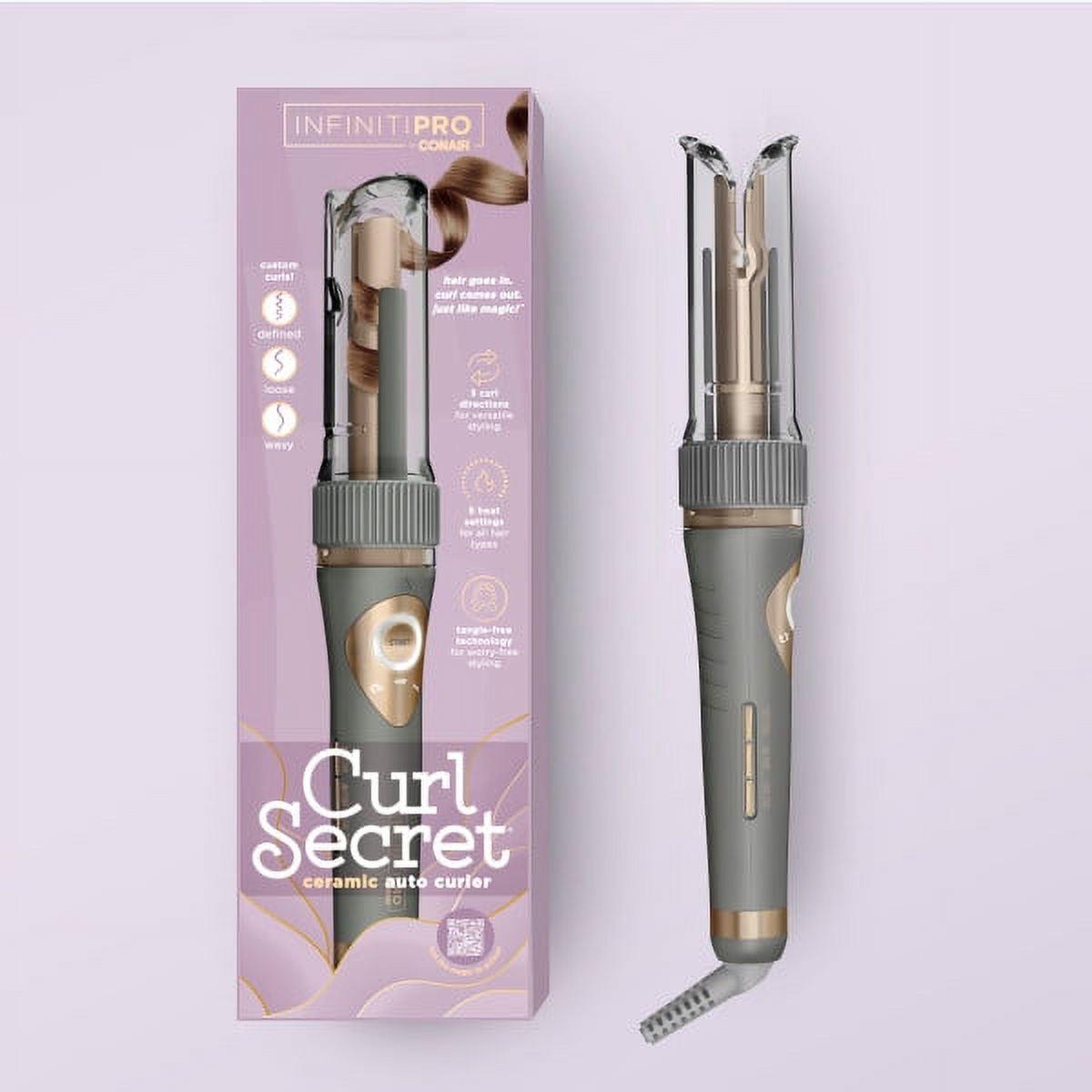 The InfinitiPRO by Conair Curl Secret is the new way to create curls that won’t quit. Select a temperature, a curl type, and a curl direction, then place a section of hair into the slot. Push START and watch as hair gently wraps around the barrel. In moments, you can release hair from the styler to reveal the perfect curl! Styling is safe with the protective cover that keeps the hot barrel from getting too close to the scalp. The 8 ft. cord and auto-off technology ensure easy, stress-free styling. Choose from 3 preset curl types (defined, loose, or wavy), 5 heat settings for all hair types (300°F, 330°F, 355°F, 385°F, or 410°F) and 3 curl directions (left, right, or alternating). With different temperature, direction, and curl type combos, you control the results. The ceramic barrel heats up evenly for less damage and healthy-looking hair while tangle-free technology provides peace of mind. Make the magic happen every day, in every way, with Curl Secret.