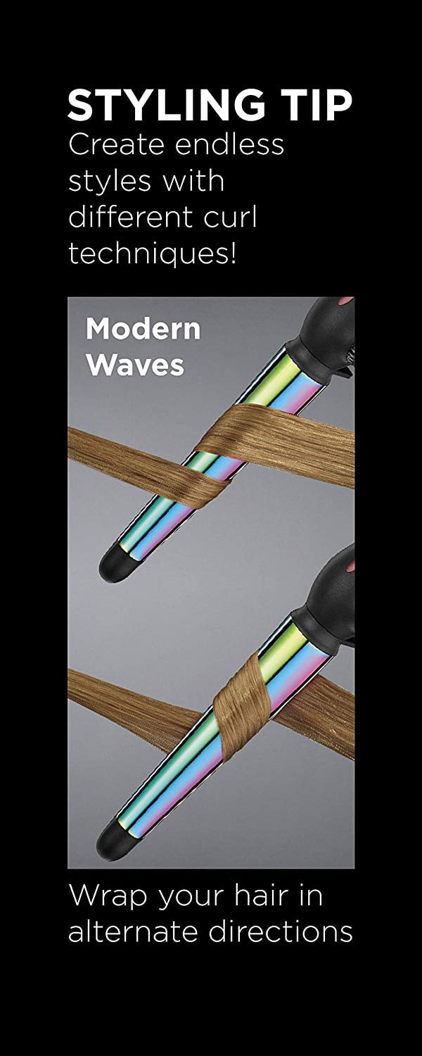 Style in color. Life is better in color! The InfinitiPRO by Conair 1¼-inch to ¾-inch Rainbow Titanium Curling Wand creates tousled waves with ease. The barrel is tapered for a variety of waves, and titanium technology reduces frizz and adds shine. A thermal glove is included for extra protection.