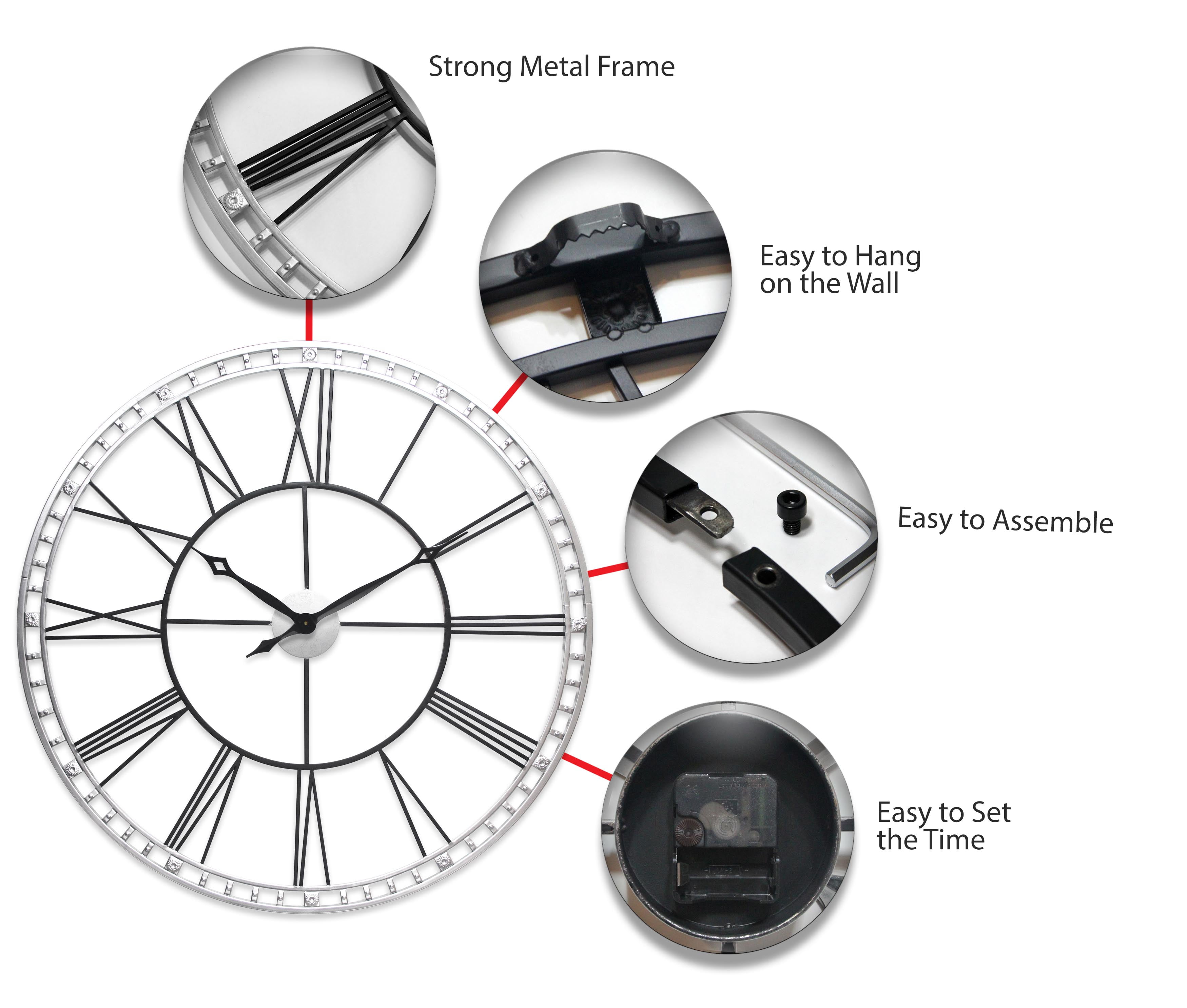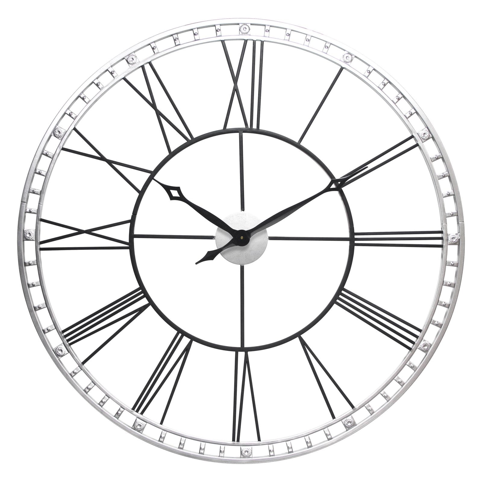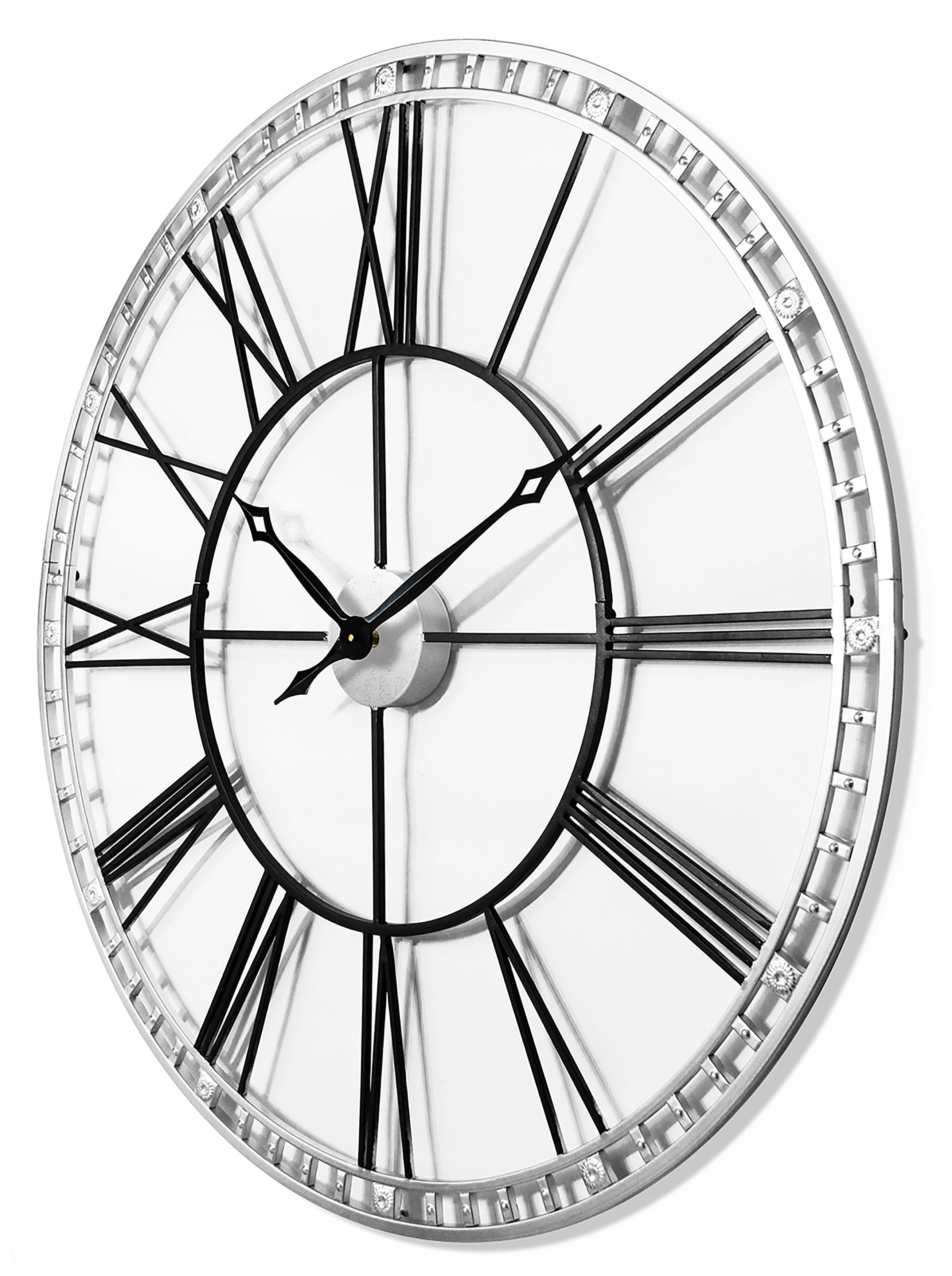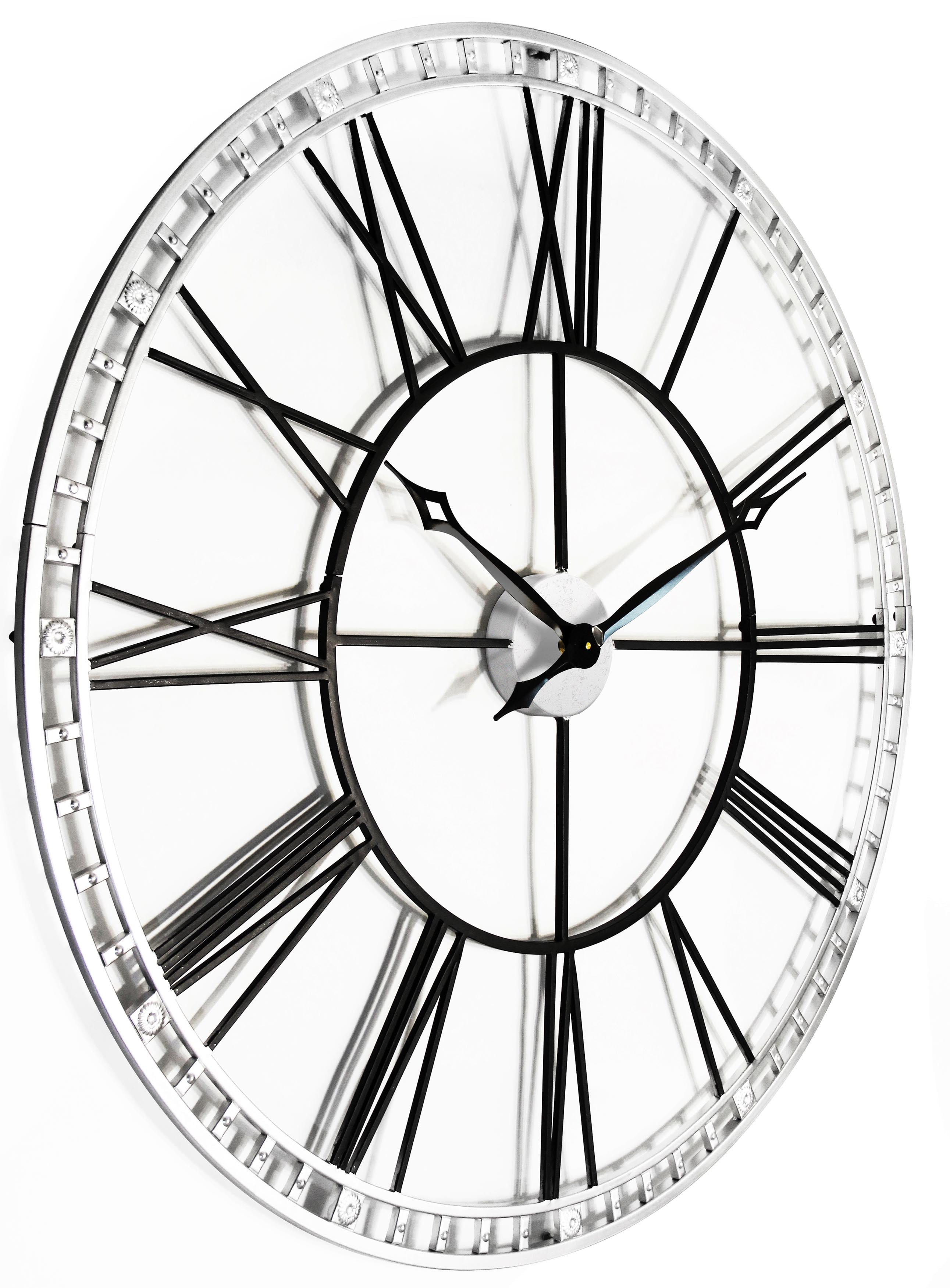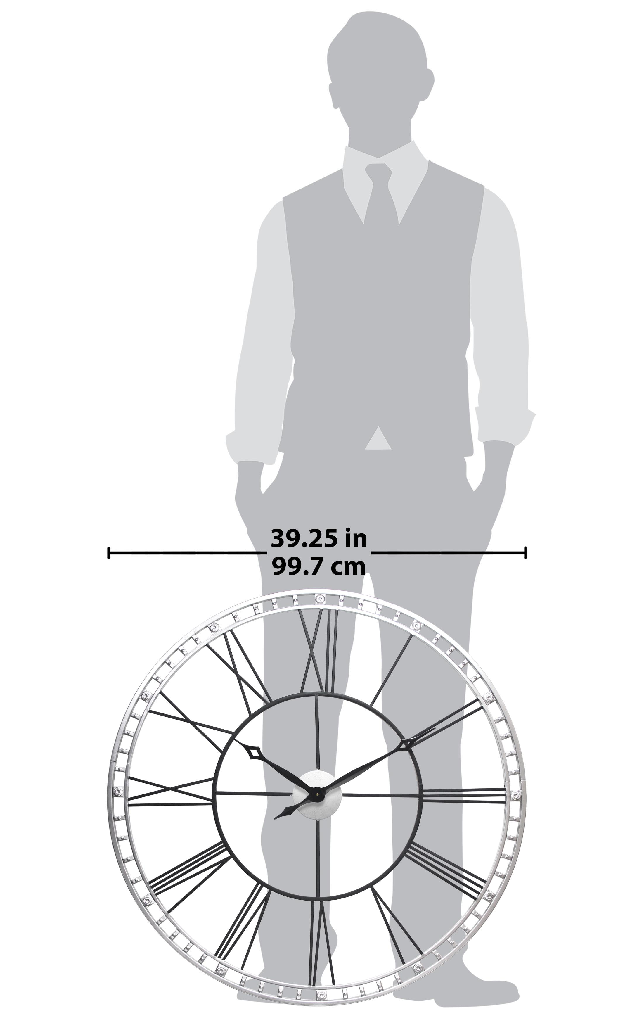 The Infinity Instruments The Tower XXL Wall Clock showcases subtle lines and negative space to bring a vintage, art deco appeal to any room. This clock features a metal frame with Roman numerals. Its traditional-style hands complement the open face, and the frame holds the numerals and adds an elegant look to your home or office walls. Choose from the available finishes. Infinity Instruments When you need a clock for your home, Infinity Instruments offers infinite possibilities of high style at great prices. Infinity offers a huge selection of decorative clocks for both indoor and outdoor use. You can find clocks designed make a bold statement in today’s larger scale living areas as well as clocks that tuck easily onto a shelf, desk or table.Infinity clock faces range from 10 to 38 inches and come in a dazzling array of traditional, contemporary, retro, and thematic styles, even handmade glass clocks from Italy