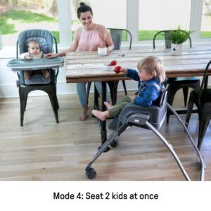– High chair, booster, toddler chair, or seat 2-kids-at-once!