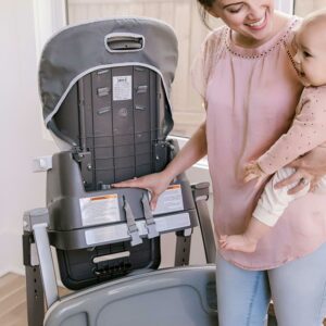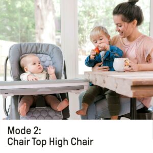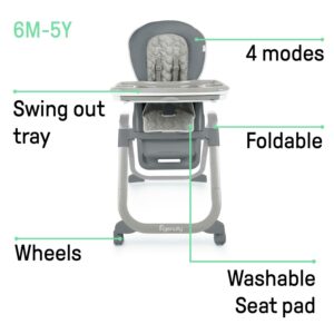 Kids grow up fast, and this convertible high chair grows with them. The SmartServe 4-in-1 High Chair offers beautiful design and intelligent functionality that parents need to keep up with their quickly developing kids. There are 4 ways to use this high chair as your baby and your family grows. Choose between the full sized high chair setting, booster seat setting, toddler chair setting, or use the booster seat and toddler chair to seat two kids at once! It also includes 4 locking positions to grow with baby. The swing tray design moves out of the way with just one movement and just one hand, making it easier to take baby in and out. Tucked discreetly inside is a second tray made just for parents. Pull out the hidden-drawer tray for easy access to flatware or other items that you can store right inside. You can also use the tray extension to keep things out of babys reach. The high chair easily folds for storage when not in use. The detachable tray and insert are dishwasher safe, and the fabric seat pad and straps can be tossed in the laundry. Every option was carefully designed by Ingenuity to give your baby a seat at the table for more meaningful mealtimes and less kitchen cleanup.