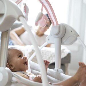 Ingenuity Soothe ‘n Delight 6-Speed Portable Baby Swing with Music – Flora the Unicorn (Pink)