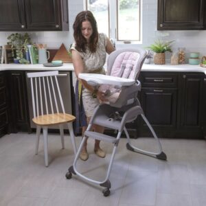 – BPA-free tray holds trays up to 19 inches wide; full highchair assembled dimensions 40.9″ (H) x 21.7″ (W) x 38.2″ (D); to disassemble remove seat pad, harness and straps from frame