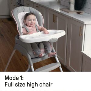 – Messy eaters are no match for the Ingenuity Trio 3-in-1 High Chair easy clean design; includes dishwasher safe tray, machine washable seat pad and straps, and easy-wipe frame