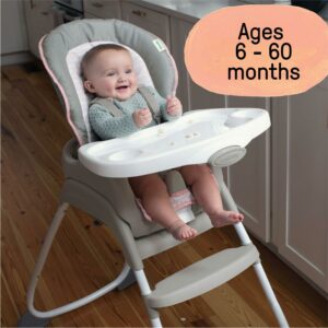– Feeding chair keeps little ones secure with 5-point harnesses and seat pad to keep babies and toddlers comfortable; fits babies from 6 months to toddlers up to 50 lbs