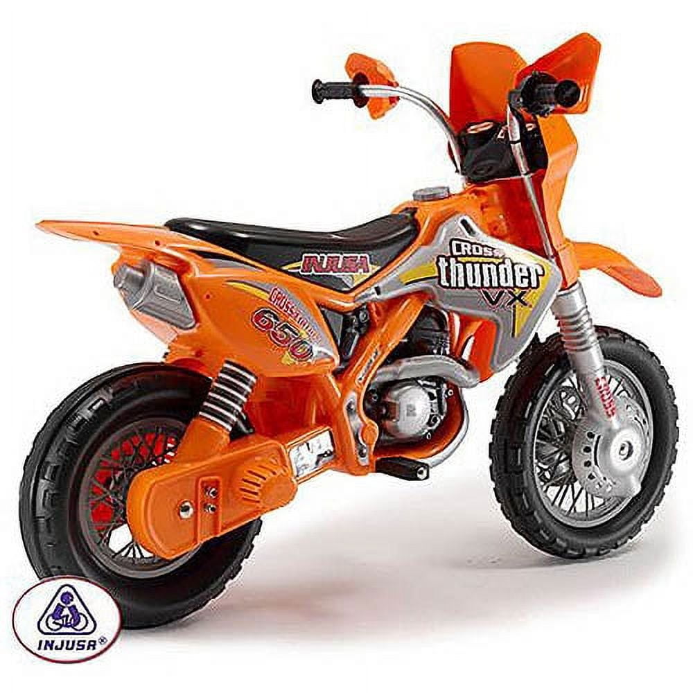 The Injusa Thunder Max VX 12V Dirt Bike is sure to delight those kids that are always on the go. It is sleek, detailed and has lots of cool decals. This vehicle is designed and built with quality specifically for children 3years of age and older. The kids ride-on travels at a speed of up to 4.5 miles per hour, which is just fast enough to thrill children while ensuring their safety. It also has training wheels for when a little extra stability is needed. The battery and charger are included so that children can get riding right away. It has a ride time of one to two hours so children can have extended periods of fun. The kids’ dirt bike is a fun way for children to improve coordination and partake in outdoor activities.