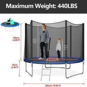 “Inolait 10FT Trampoline, with Enclosure and Wind Stakes, Blue