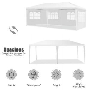 – Large Space and Multifunction: This 10′ x 20′ canopy tent is spacious enough to hold a group of people. The party tent is perfect for weddings, picnics, BBQ, or some commercial activities like flea markets or fruit markets.